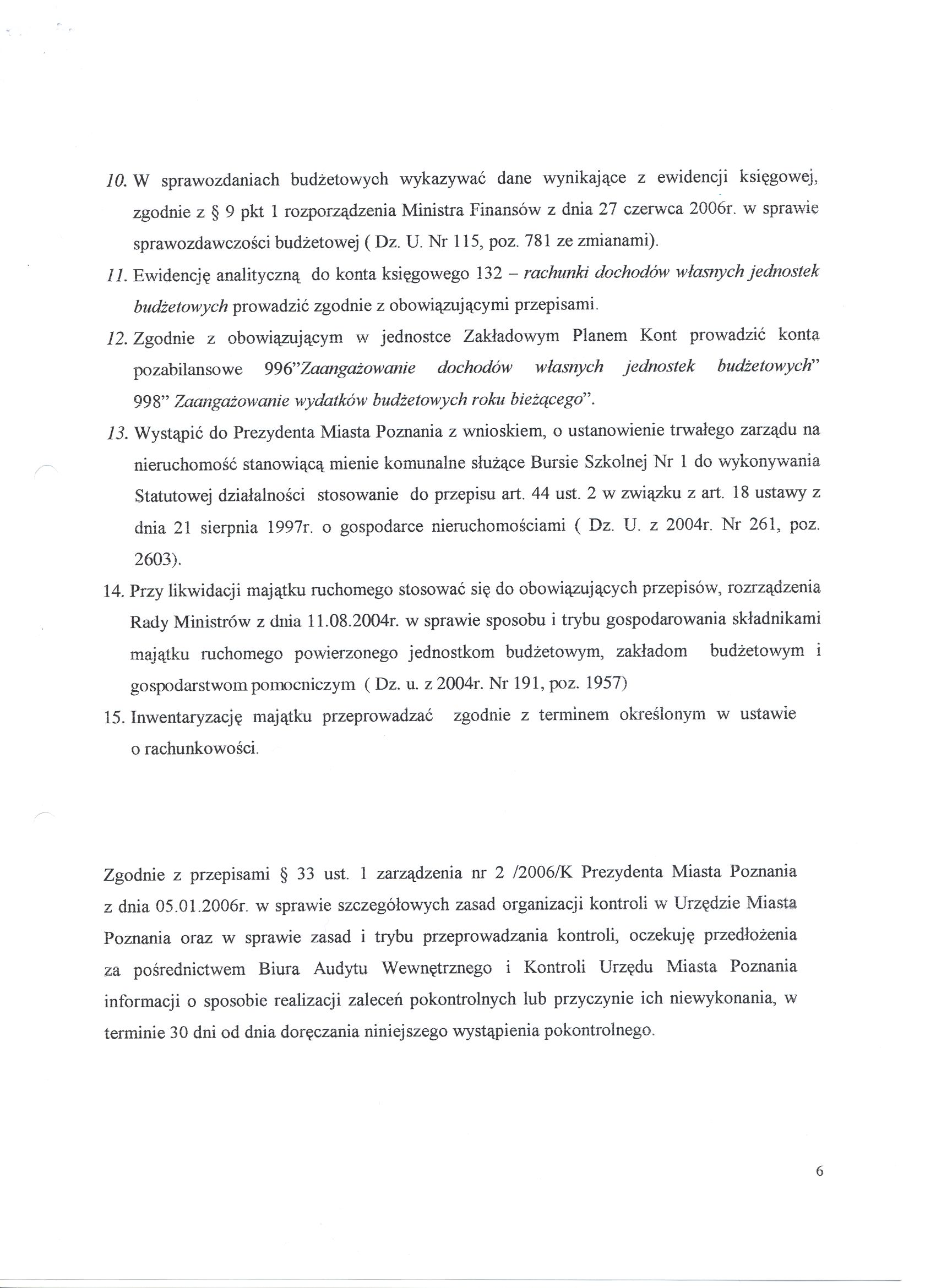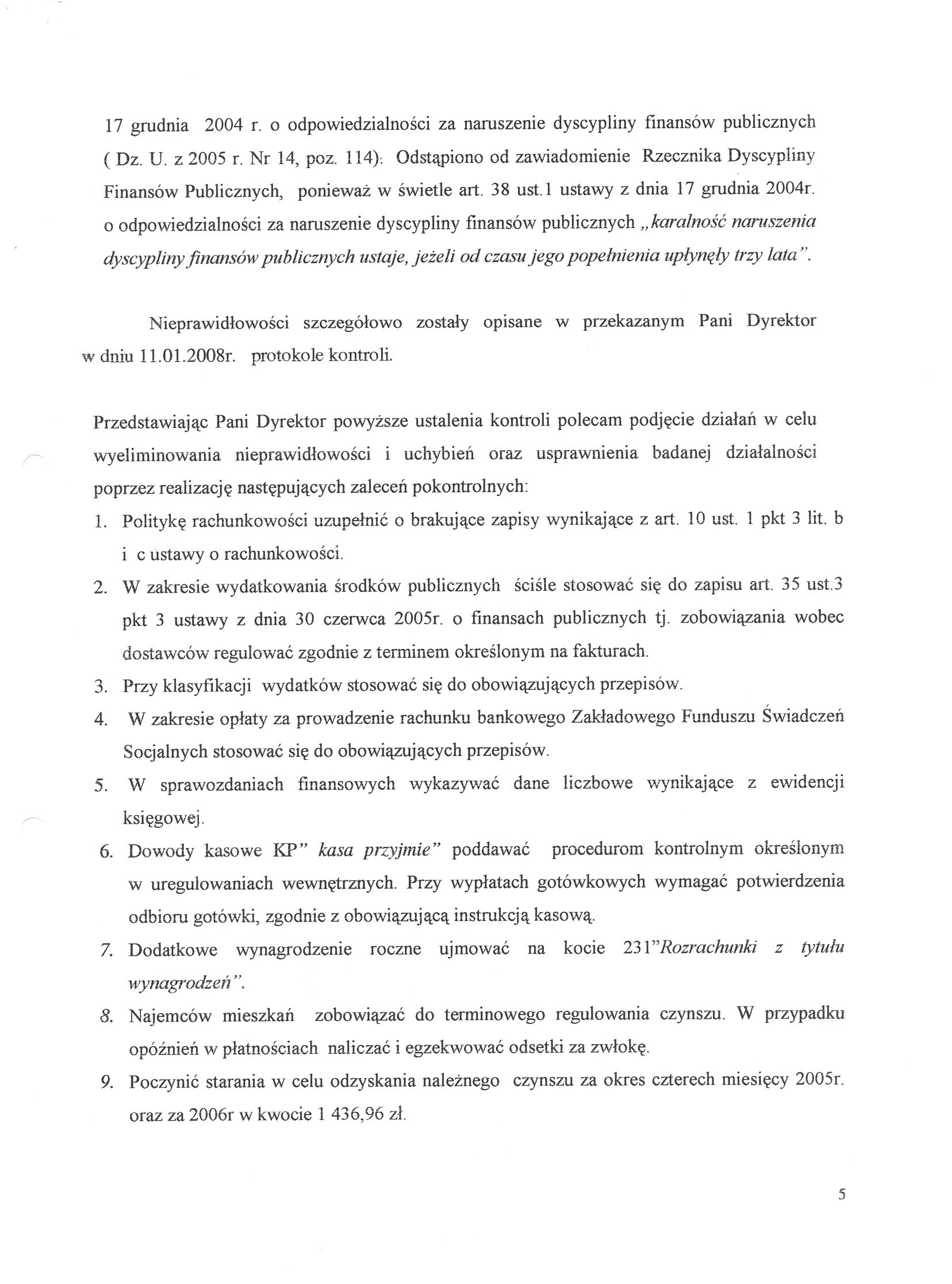 - zalecenia pokontrolne zestawiono w załącznikach
