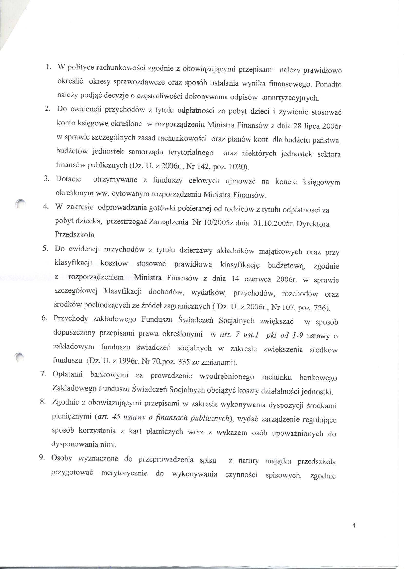 - W polityce rachunkowości zgodnie z obowiązującymi przepisami prawidłowo określić okresy sprawozdawcze oraz sposób ustalania wyniku finansowego. Ponadt należy podjąć decyzję o częstotliwości dokonywania odpisów amortyzacyjnych