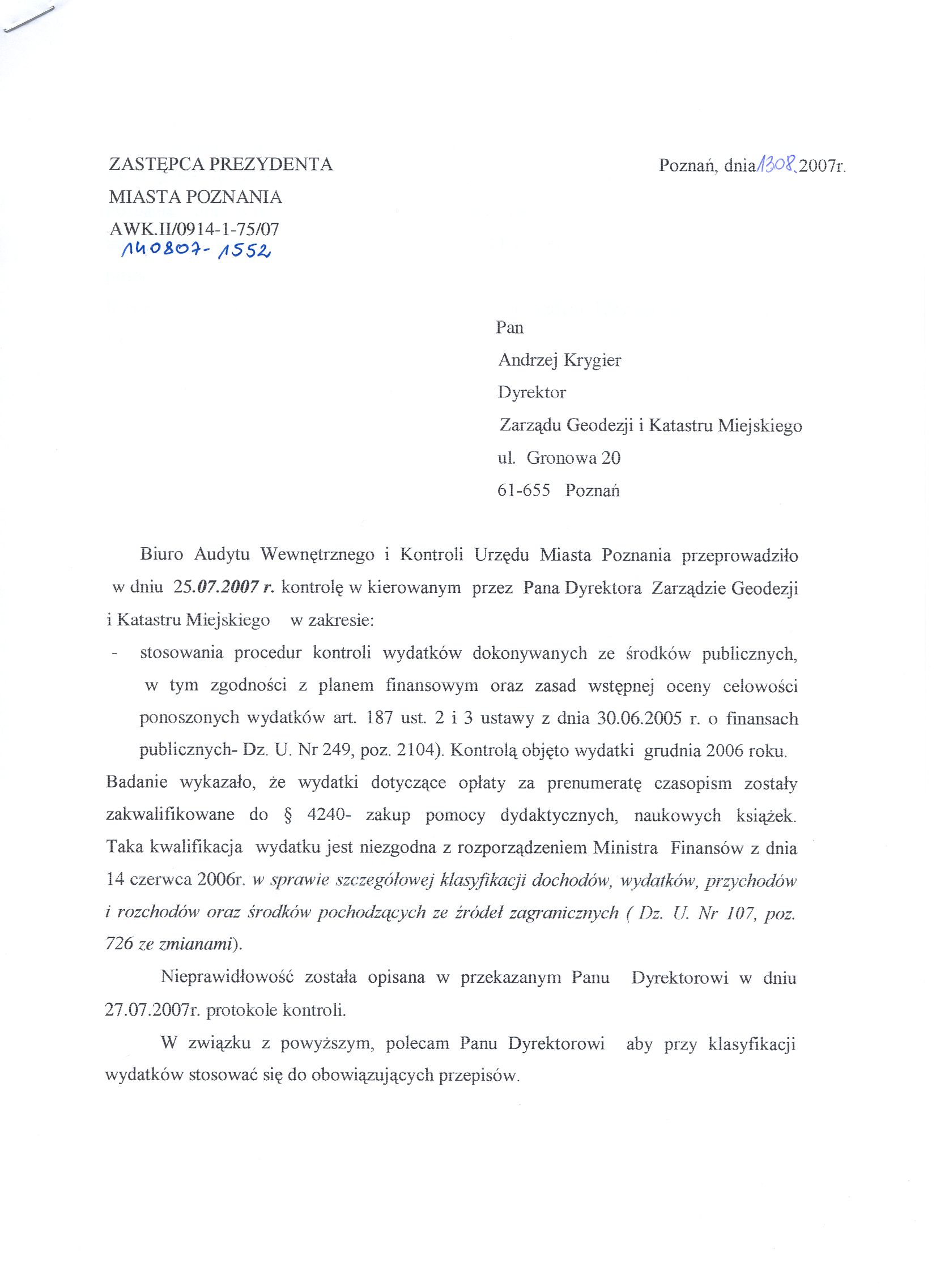 Informacja pobrana do BIP automatycznie z elektronicznego systemu zarządzania dokumentacją Urzędu Miasta Poznania.