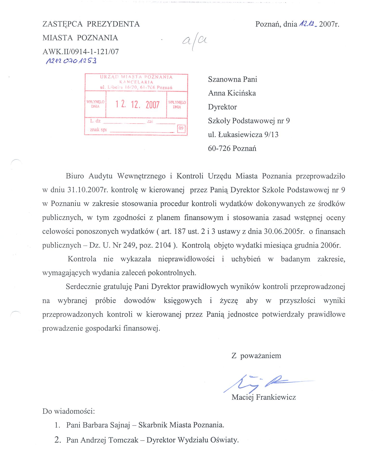Kontrola: AWK.II/0914-1-121/07