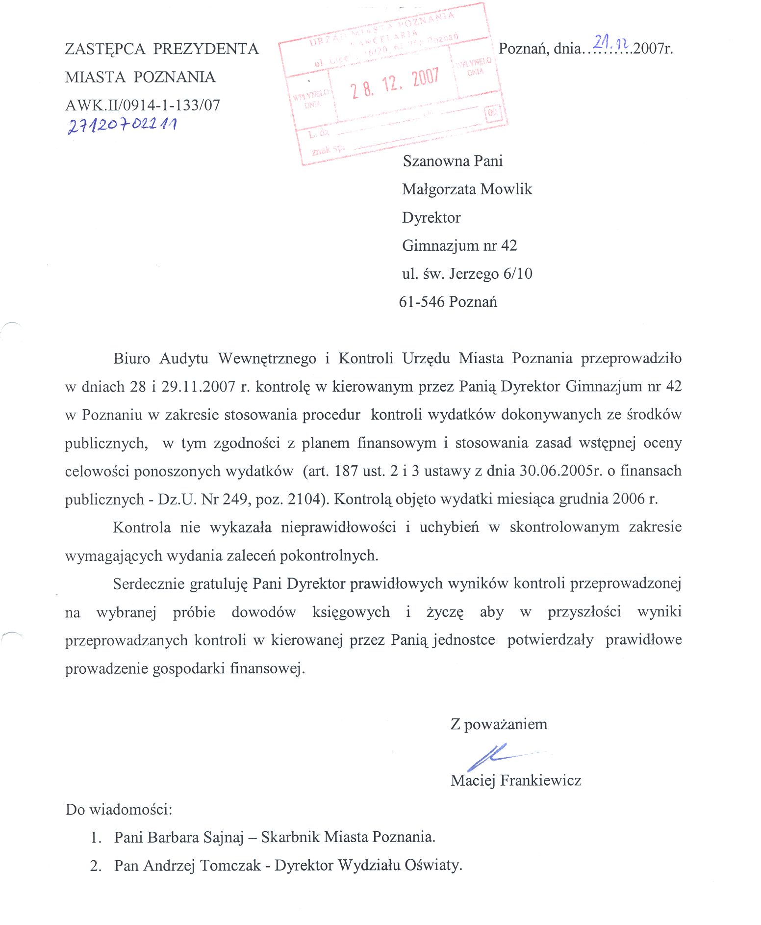 Informacja pobrana do BIP automatycznie z elektronicznego systemu zarządzania dokumentacją Urzędu Miasta Poznania.