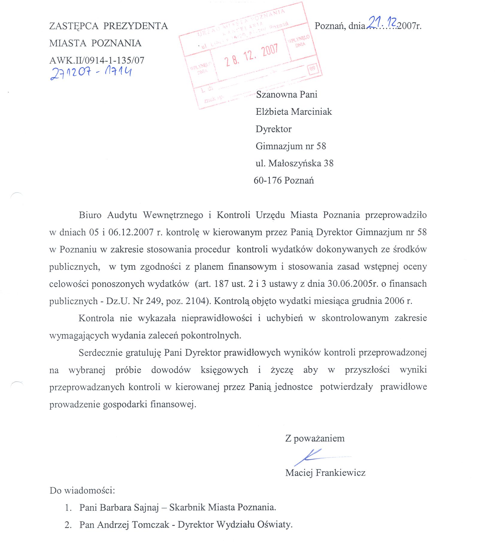 Informacja pobrana do BIP automatycznie z elektronicznego systemu zarządzania dokumentacją Urzędu Miasta Poznania.