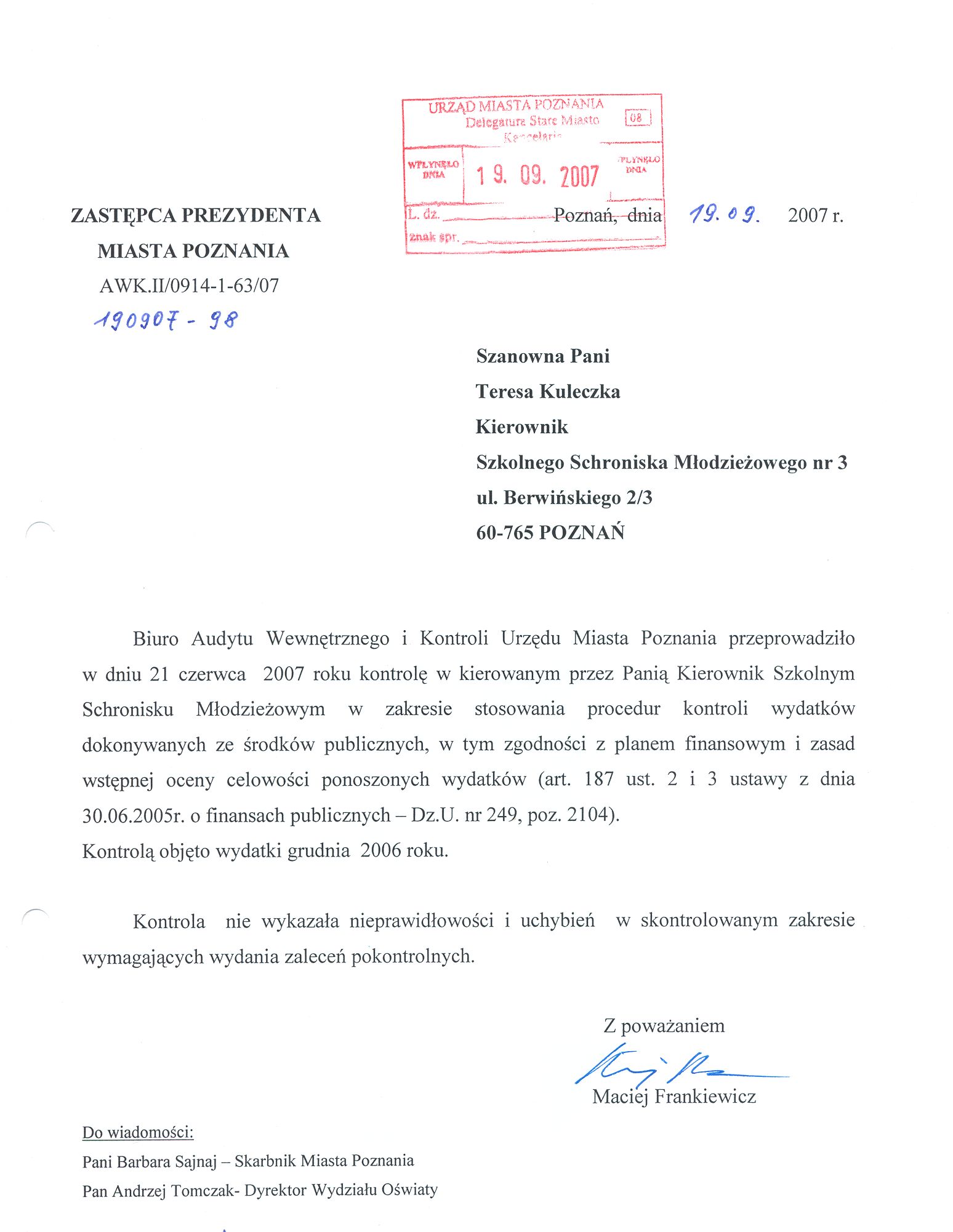 Informacja pobrana do BIP automatycznie z elektronicznego systemu zarządzania dokumentacją Urzędu Miasta Poznania.