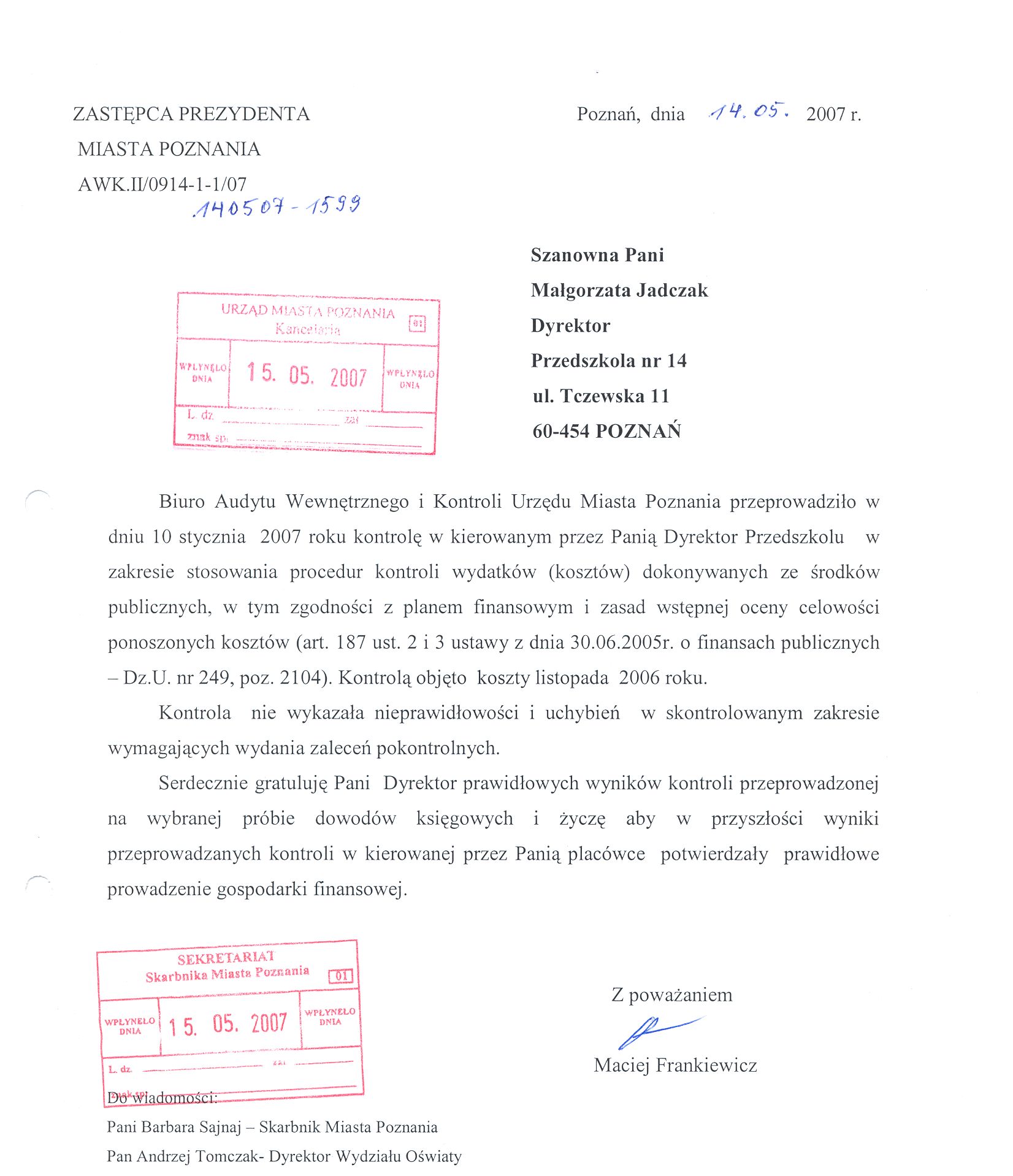 Kontrola: AWK.II/0914-1-1/07