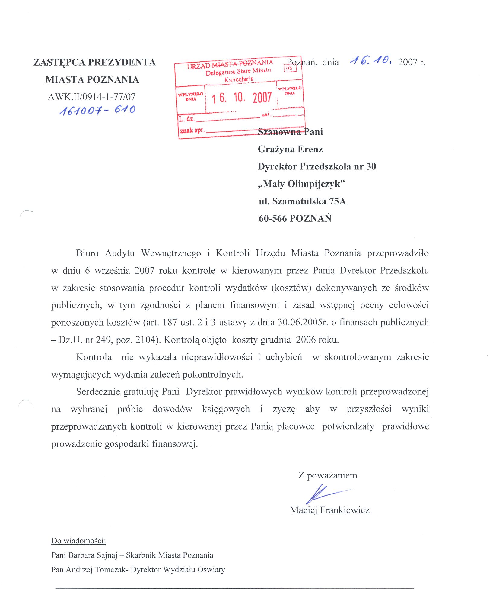 Informacja pobrana do BIP automatycznie z elektronicznego systemu zarządzania dokumentacją Urzędu Miasta Poznania.
