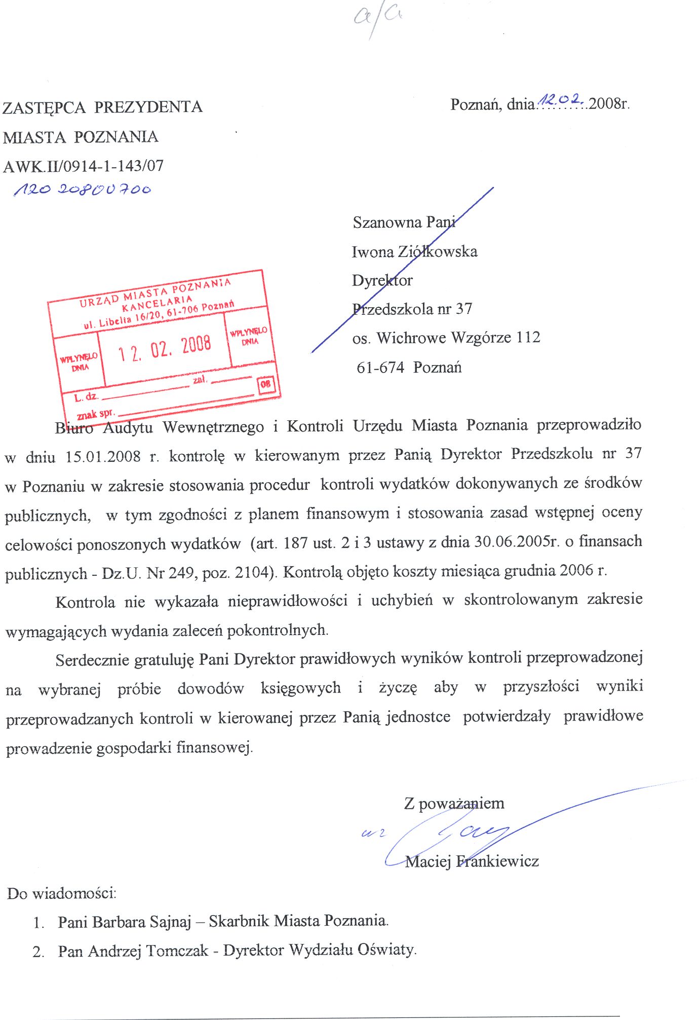 Informacja pobrana do BIP automatycznie z elektronicznego systemu zarządzania dokumentacją Urzędu Miasta Poznania.