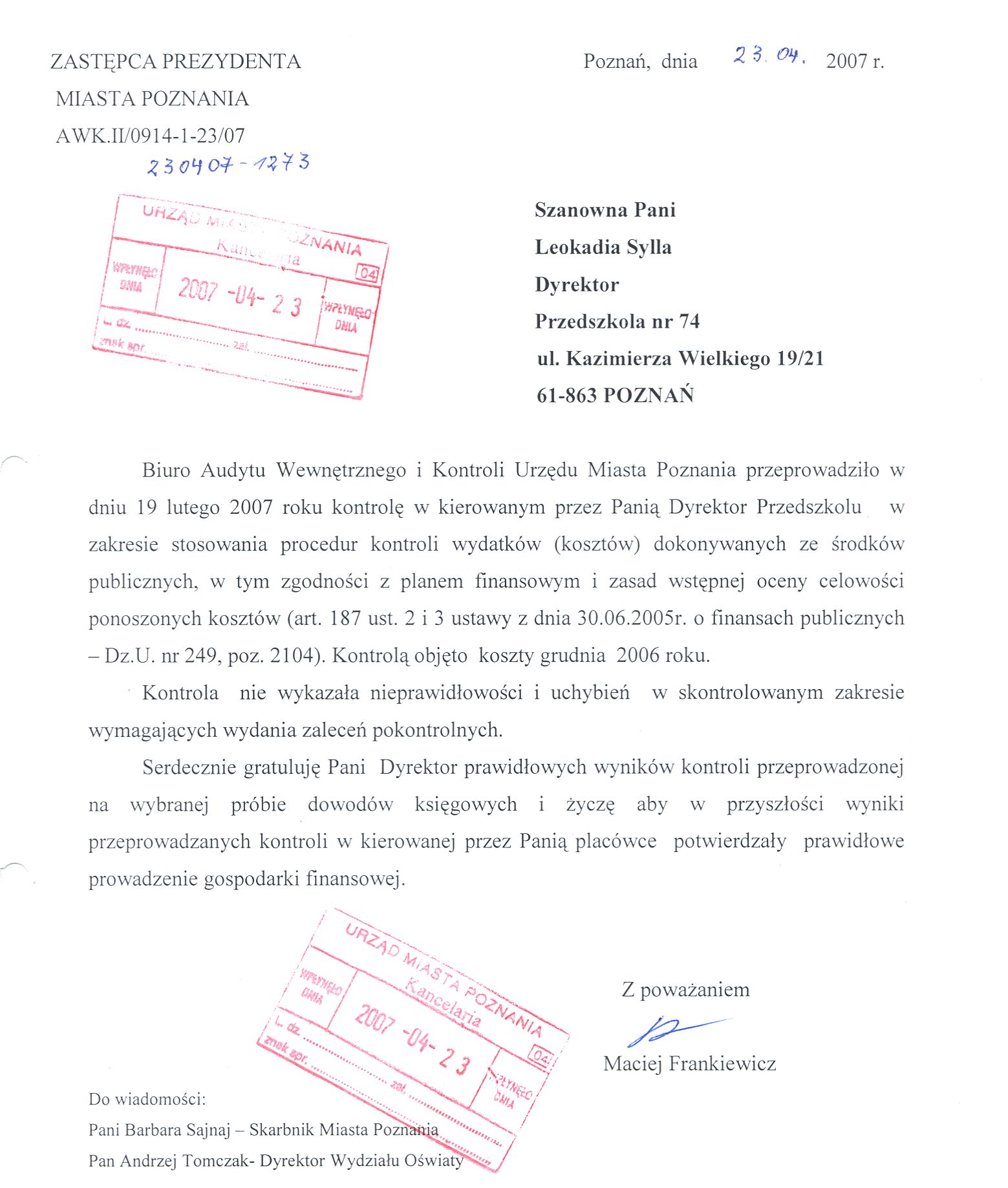 Informacja pobrana do BIP automatycznie z elektronicznego systemu zarządzania dokumentacją Urzędu Miasta Poznania.