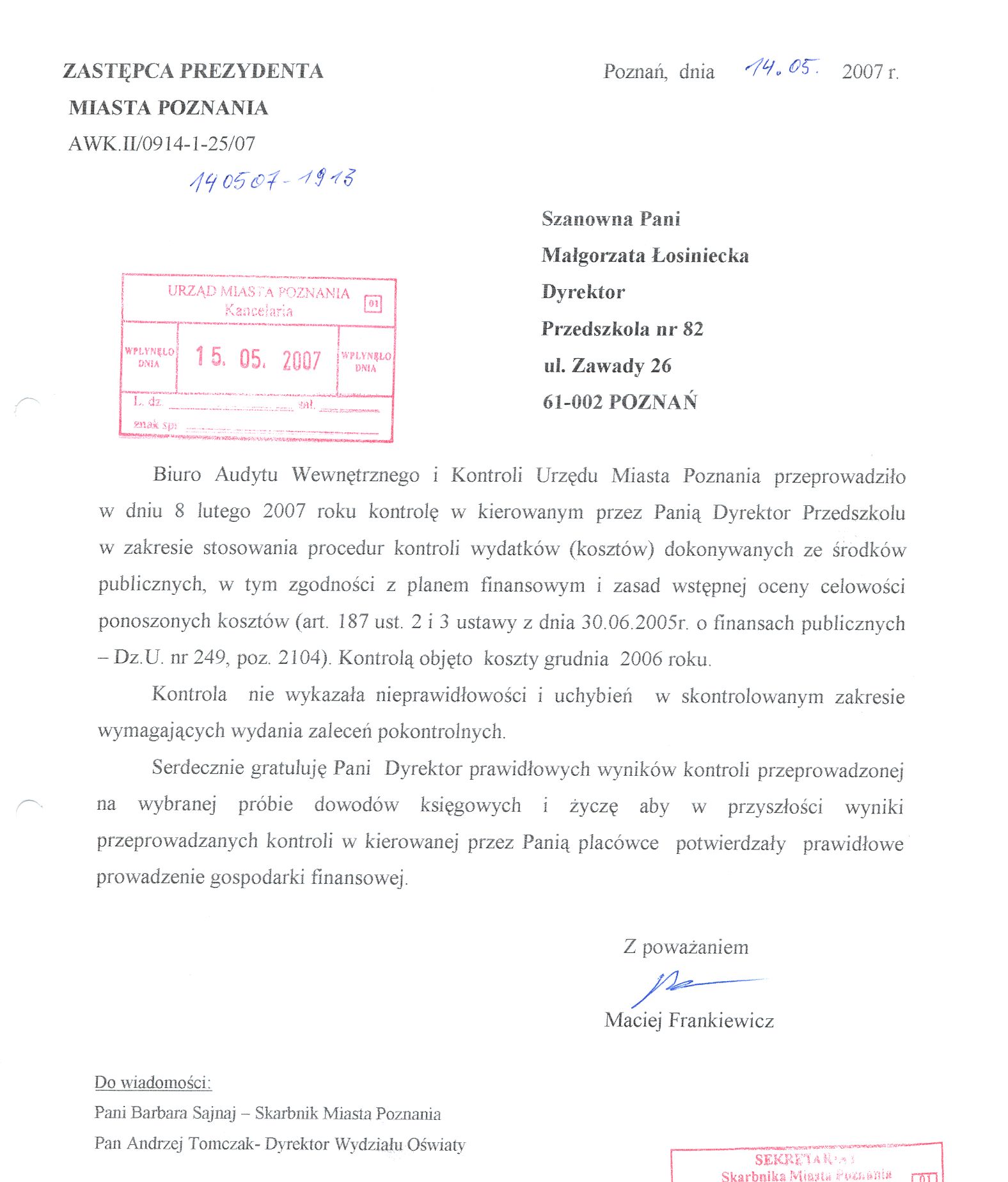 Informacja pobrana do BIP automatycznie z elektronicznego systemu zarządzania dokumentacją Urzędu Miasta Poznania.