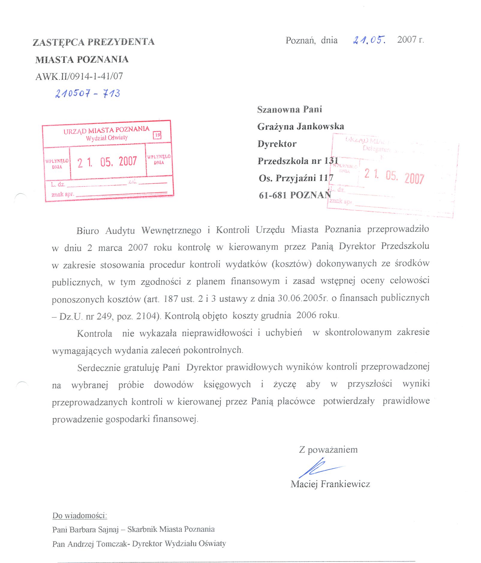 Informacja pobrana do BIP automatycznie z elektronicznego systemu zarządzania dokumentacją Urzędu Miasta Poznania.
