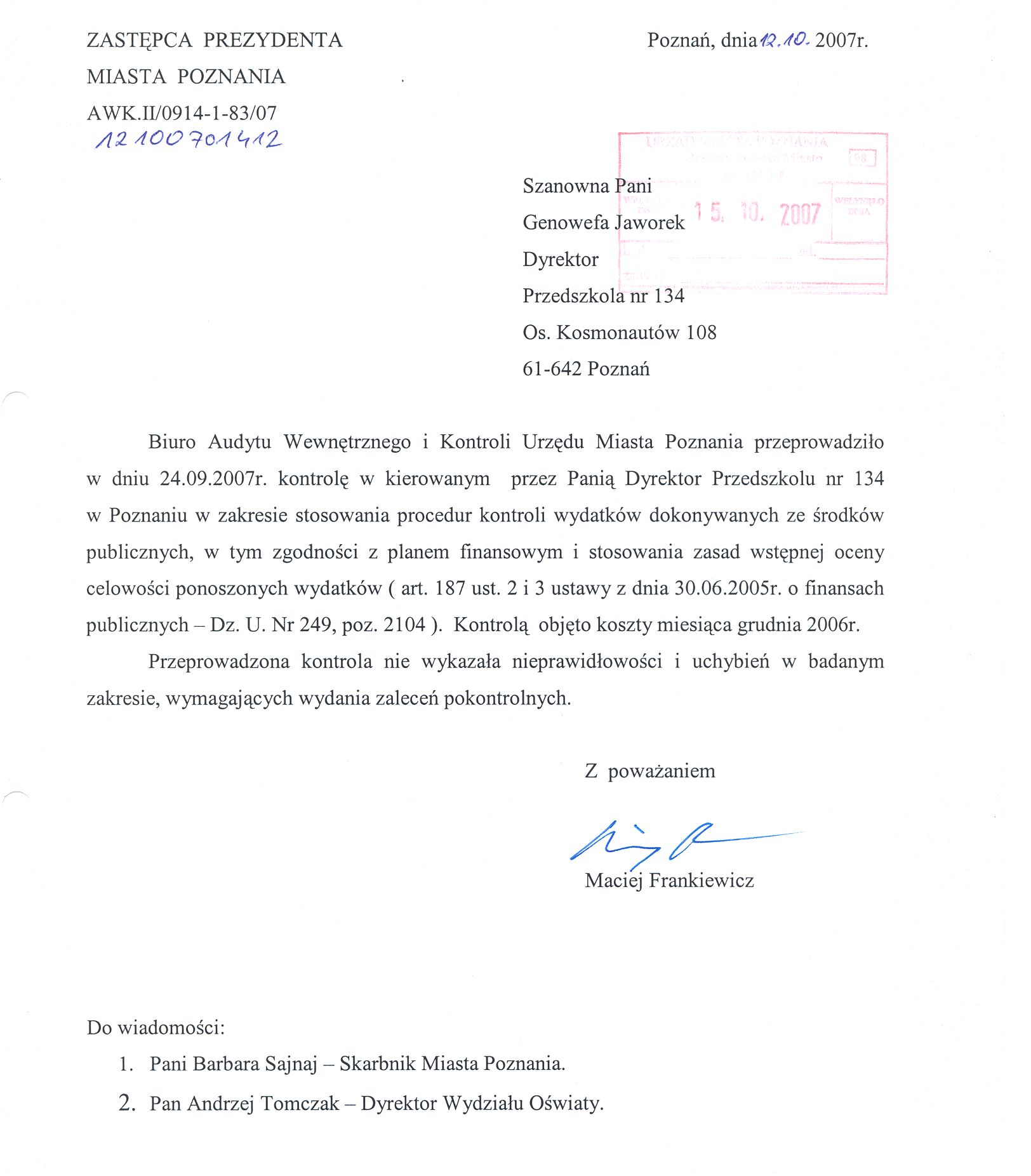 Informacja pobrana do BIP automatycznie z elektronicznego systemu zarządzania dokumentacją Urzędu Miasta Poznania.