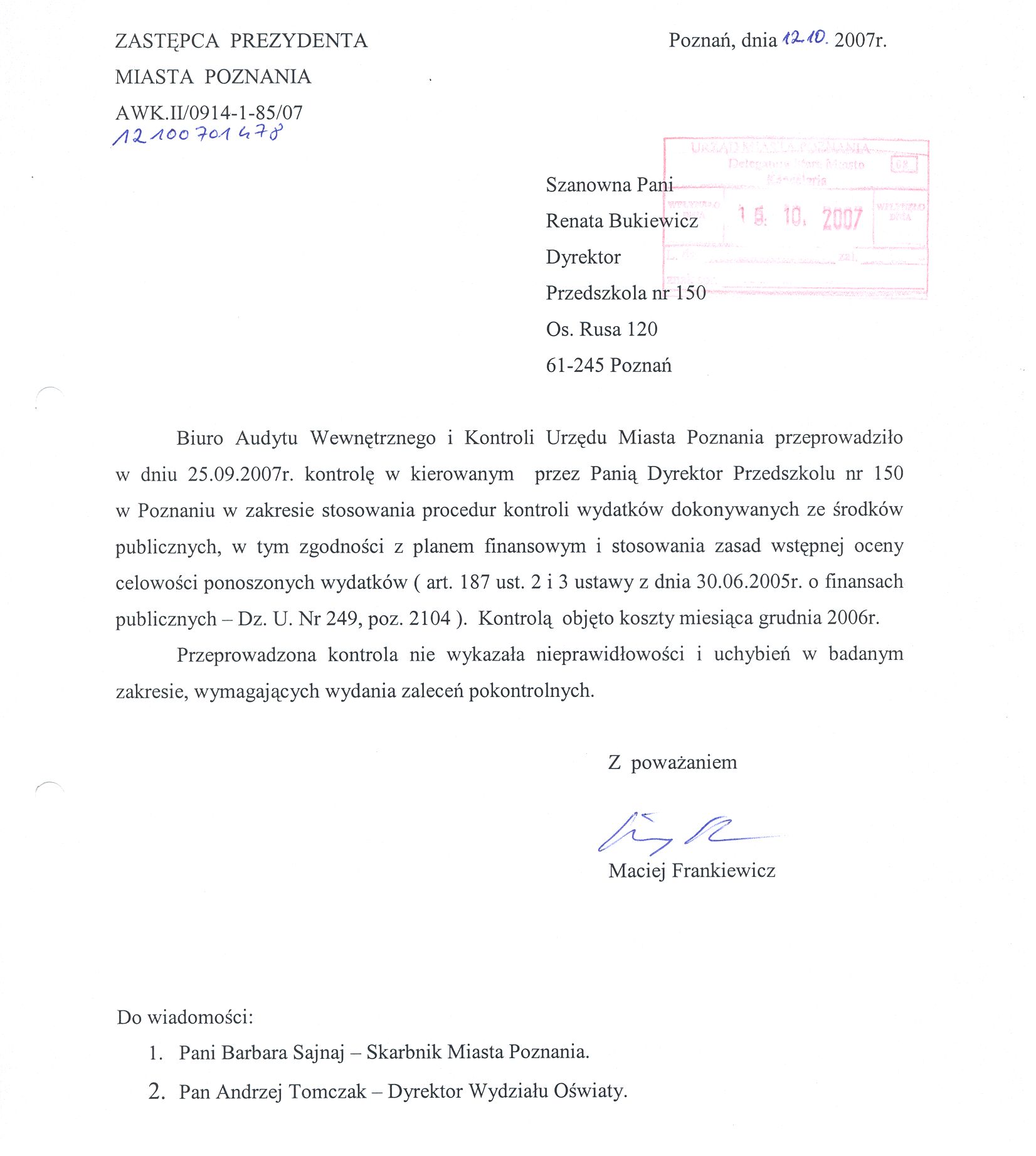 Informacja pobrana do BIP automatycznie z elektronicznego systemu zarządzania dokumentacją Urzędu Miasta Poznania.