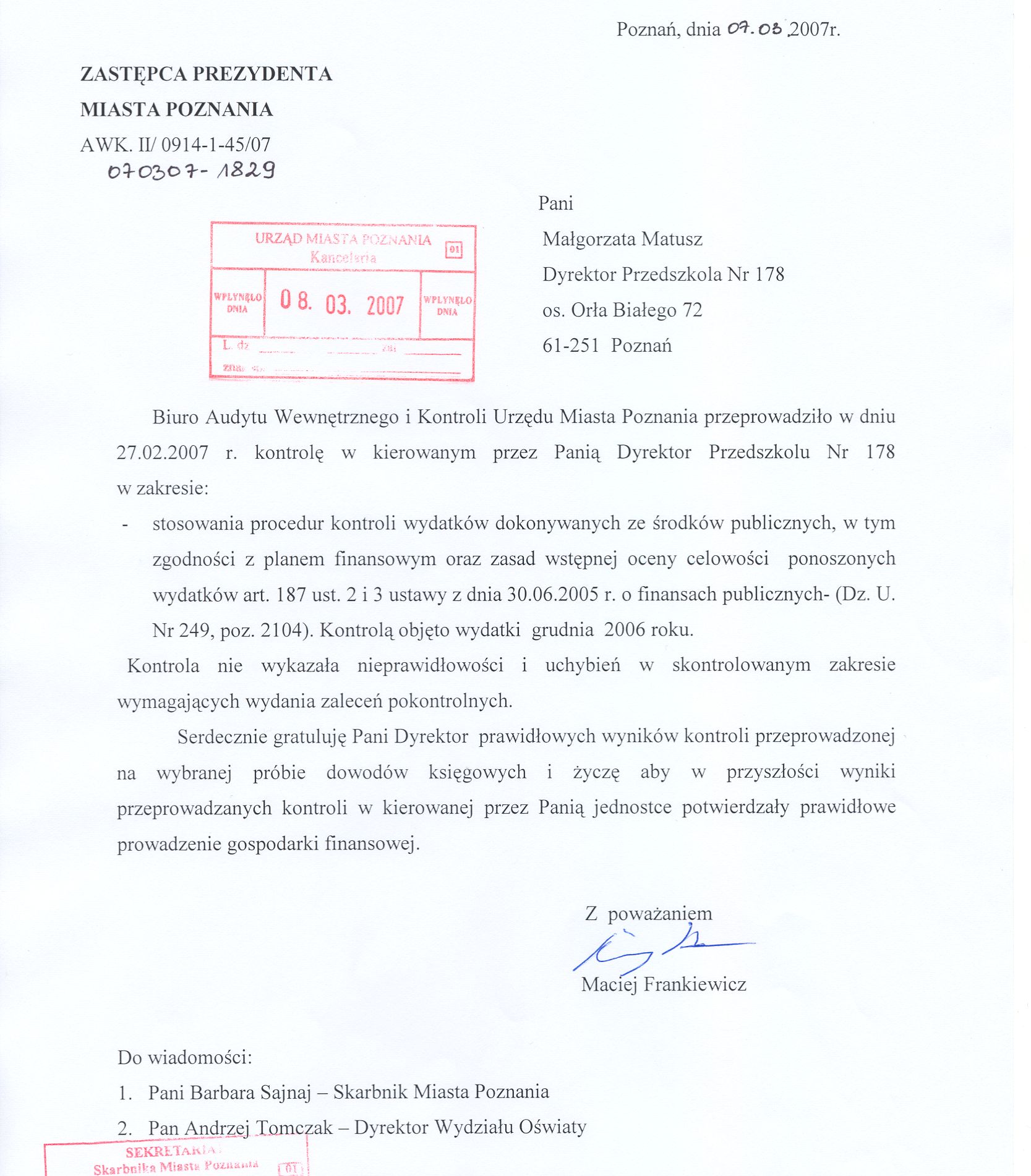 Informacja pobrana do BIP automatycznie z elektronicznego systemu zarządzania dokumentacją Urzędu Miasta Poznania.