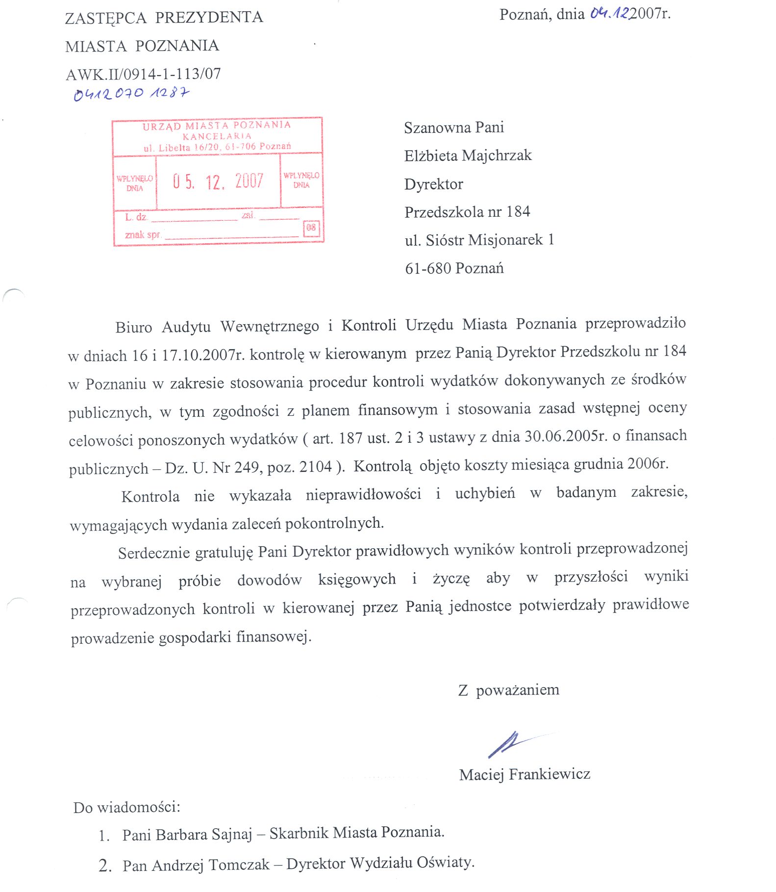 Informacja pobrana do BIP automatycznie z elektronicznego systemu zarządzania dokumentacją Urzędu Miasta Poznania.