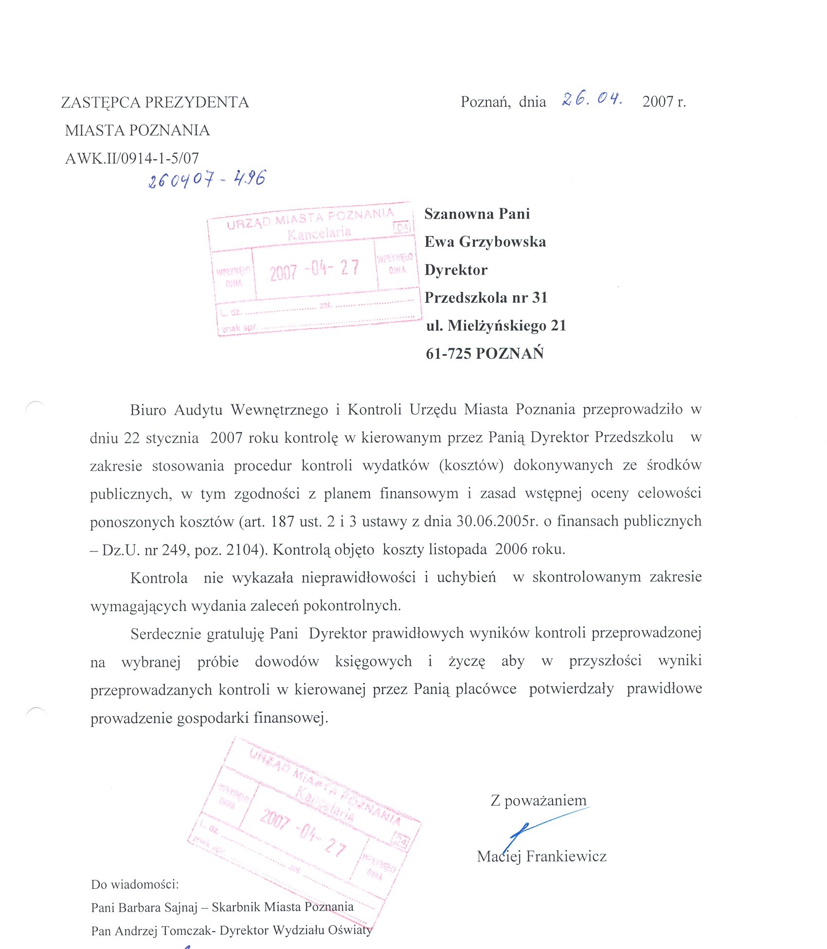 Informacja pobrana do BIP automatycznie z elektronicznego systemu zarządzania dokumentacją Urzędu Miasta Poznania.