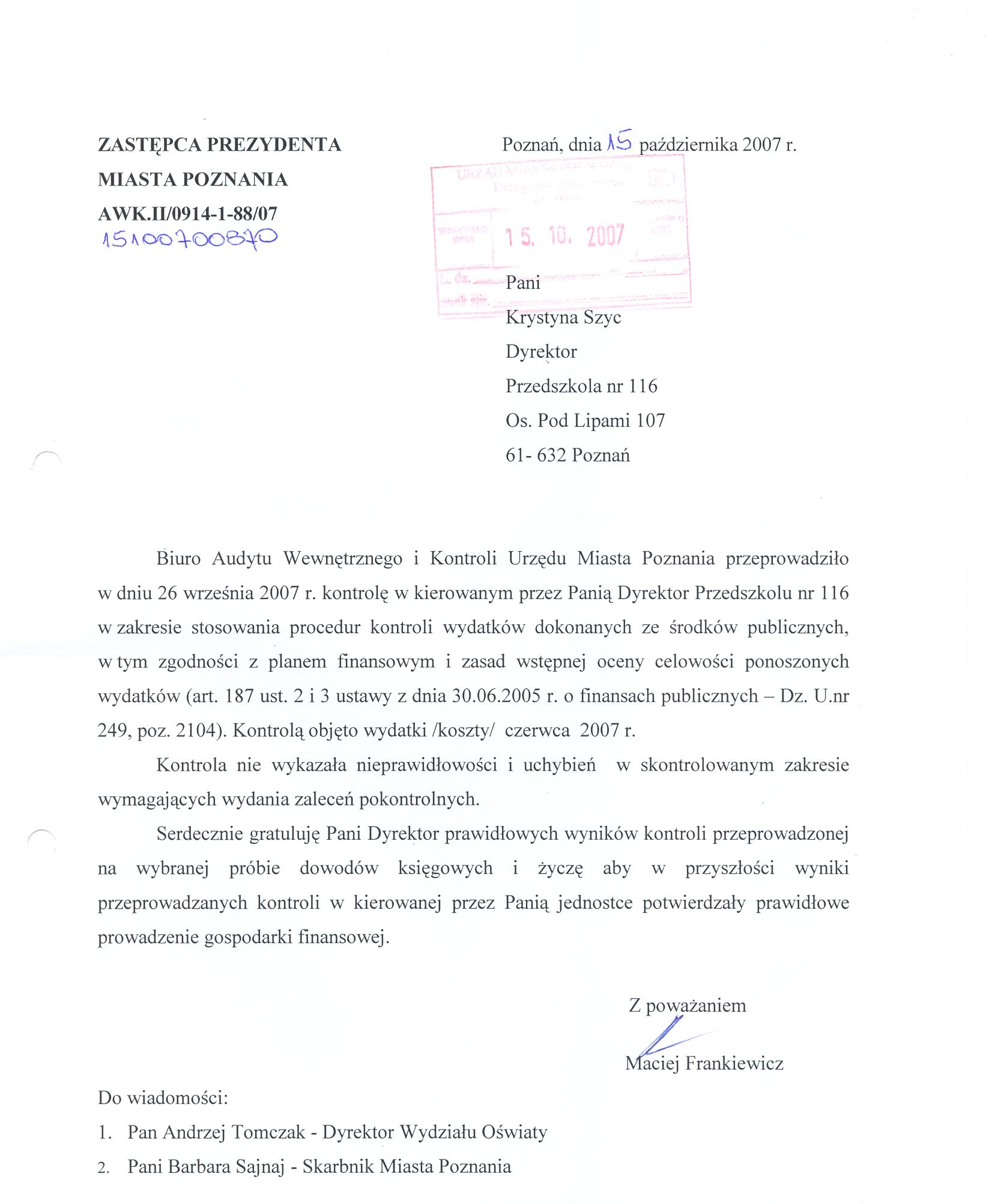 Informacja pobrana do BIP automatycznie z elektronicznego systemu zarządzania dokumentacją Urzędu Miasta Poznania.