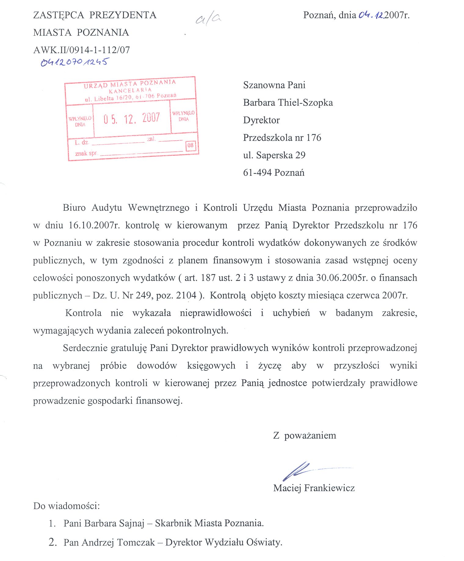 Kontrola: AWK.II/0914-1-112/07