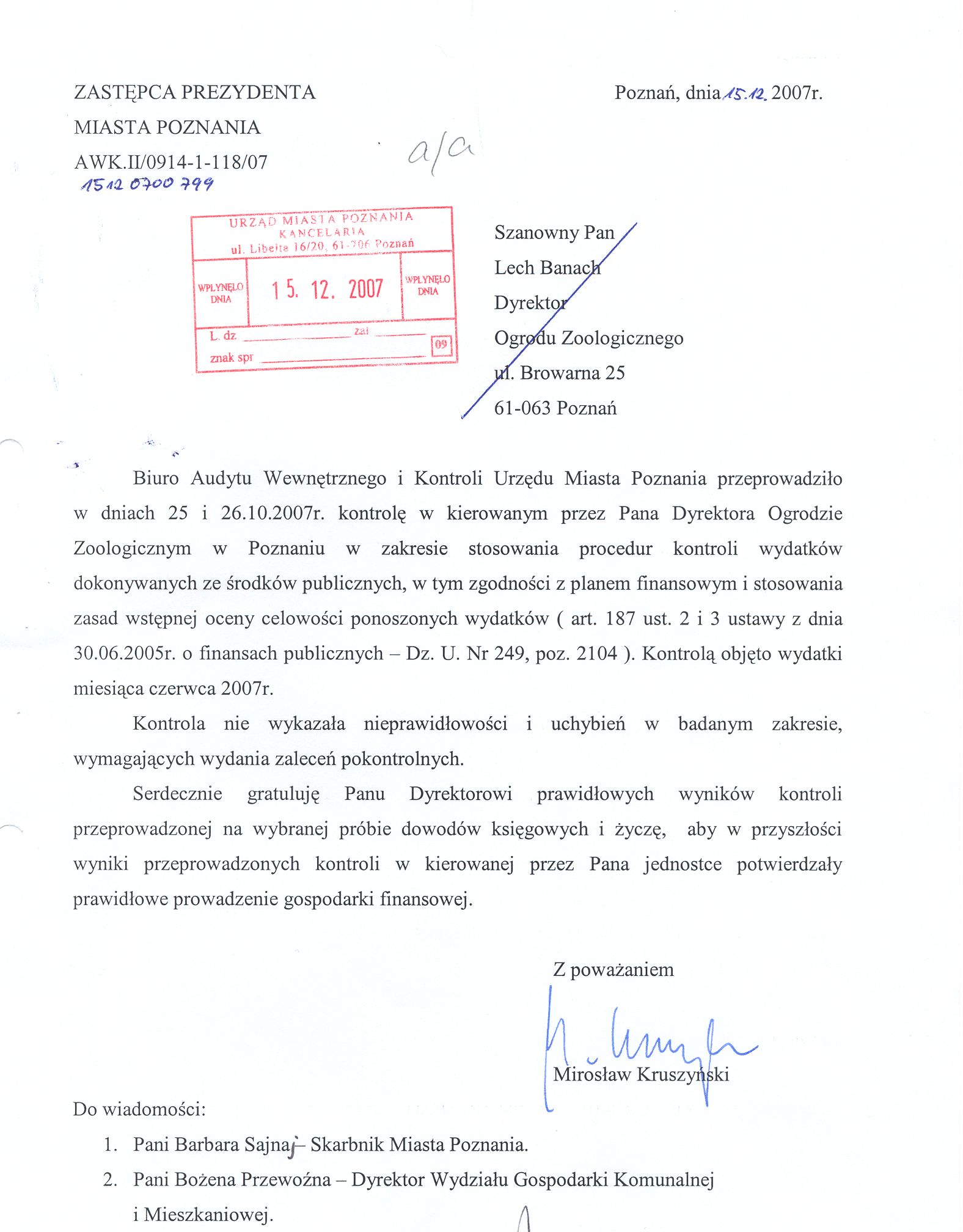 Informacja pobrana do BIP automatycznie z elektronicznego systemu zarządzania dokumentacją Urzędu Miasta Poznania.