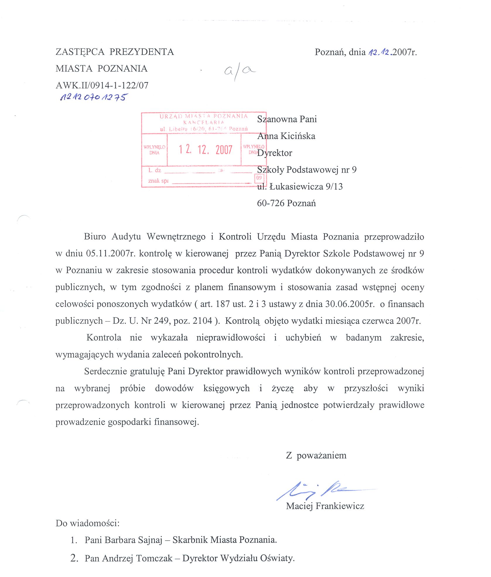 Kontrola: AWK.II/0914-1-122/07
