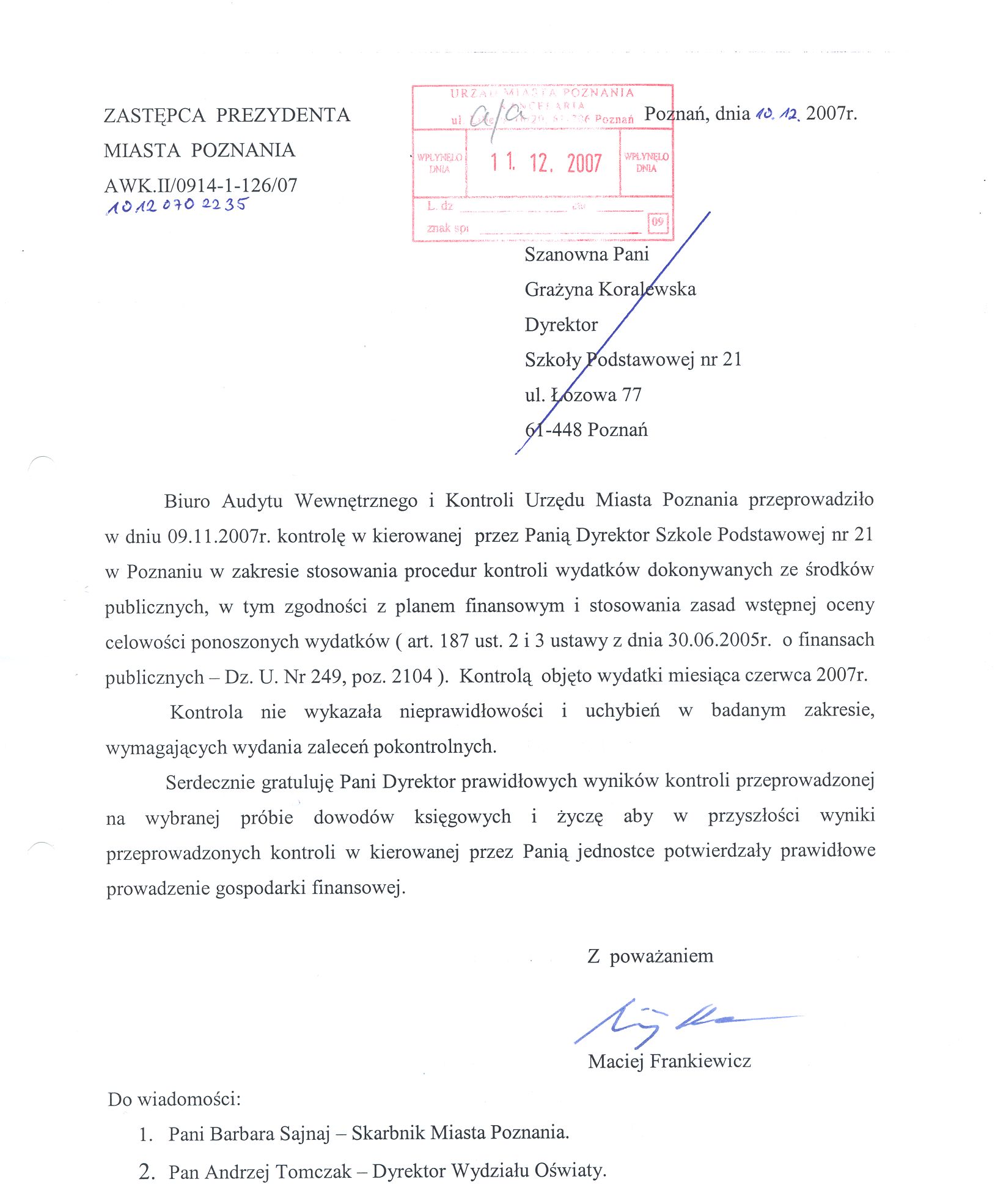 Informacja pobrana do BIP automatycznie z elektronicznego systemu zarządzania dokumentacją Urzędu Miasta Poznania.