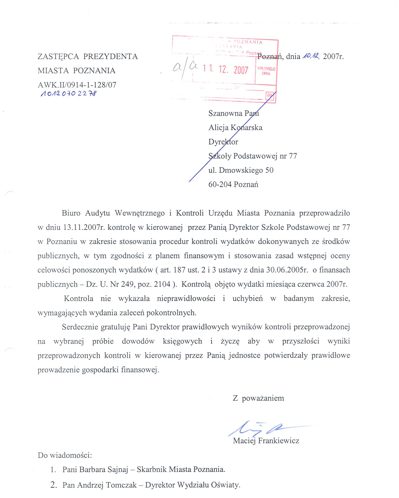 Informacja pobrana do BIP automatycznie z elektronicznego systemu zarządzania dokumentacją Urzędu Miasta Poznania.