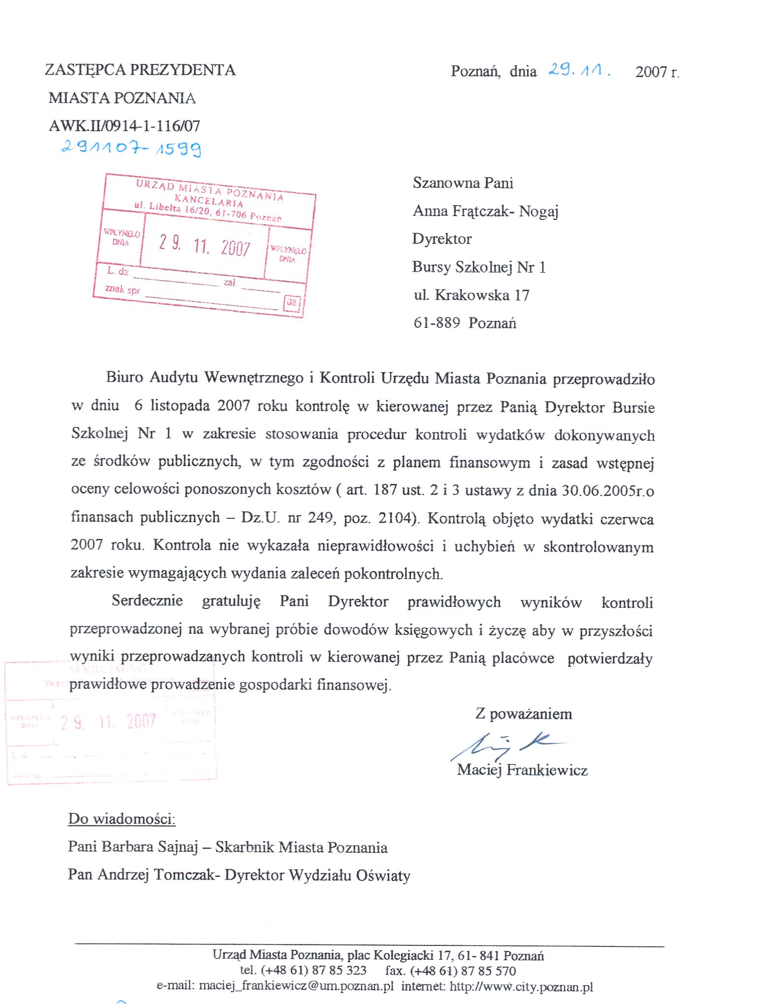 Informacja pobrana do BIP automatycznie z elektronicznego systemu zarządzania dokumentacją Urzędu Miasta Poznania.