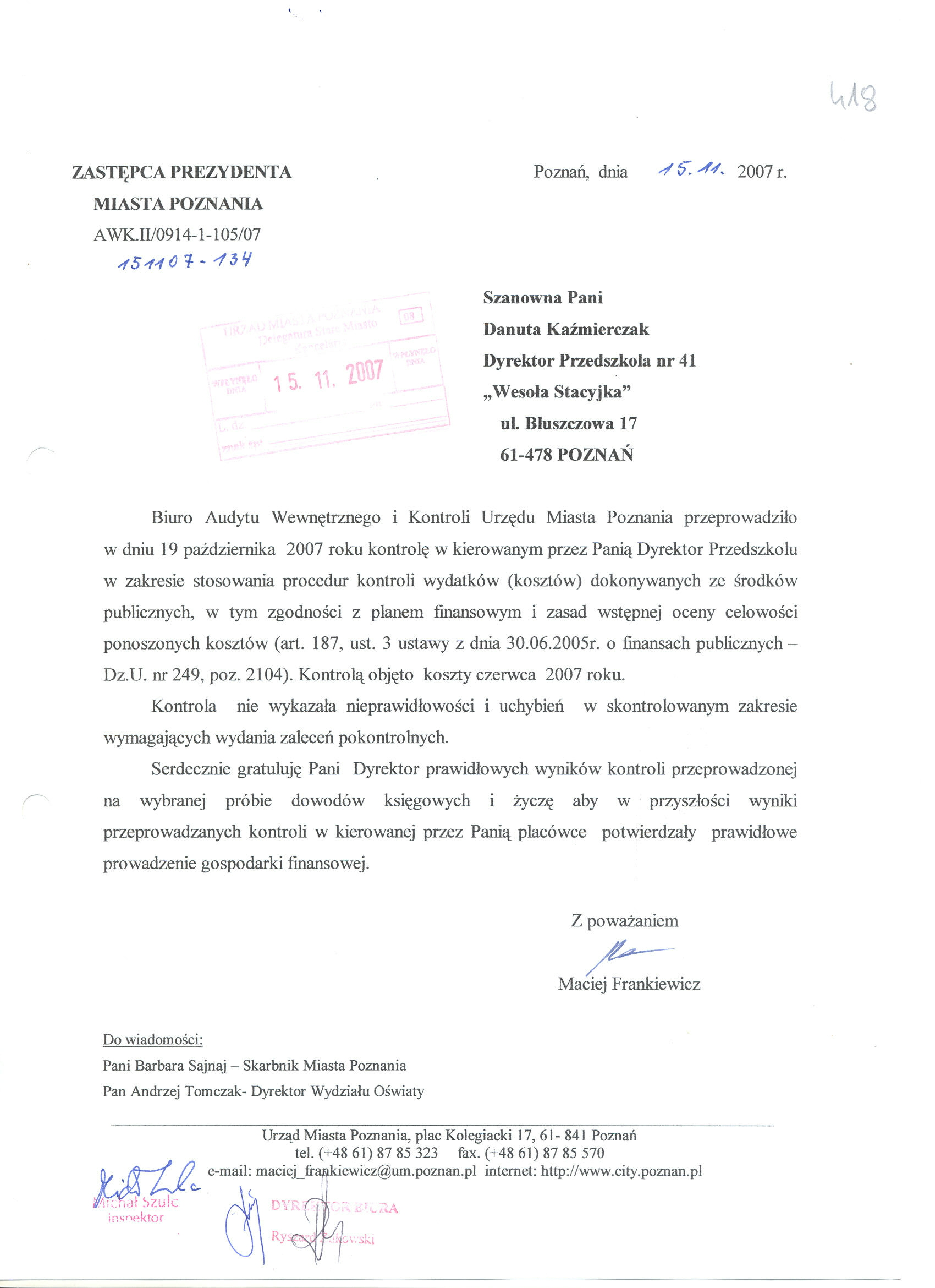Informacja pobrana do BIP automatycznie z elektronicznego systemu zarządzania dokumentacją Urzędu Miasta Poznania.