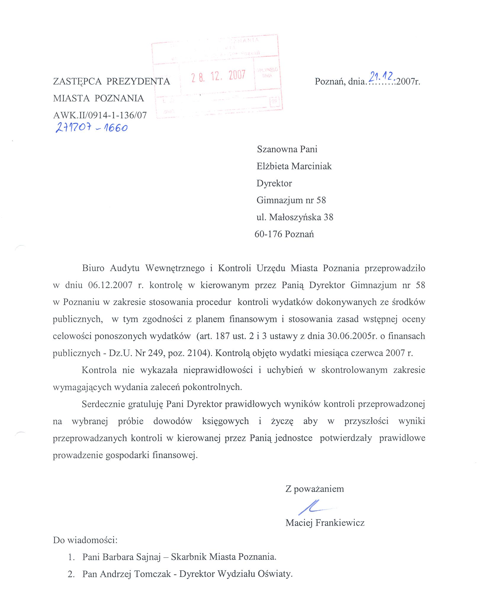 Informacja pobrana do BIP automatycznie z elektronicznego systemu zarządzania dokumentacją Urzędu Miasta Poznania.