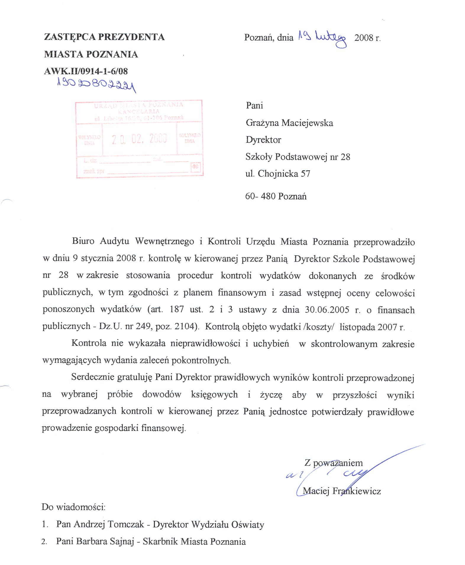 Informacja pobrana do BIP automatycznie z elektronicznego systemu zarządzania dokumentacją Urzędu Miasta Poznania.