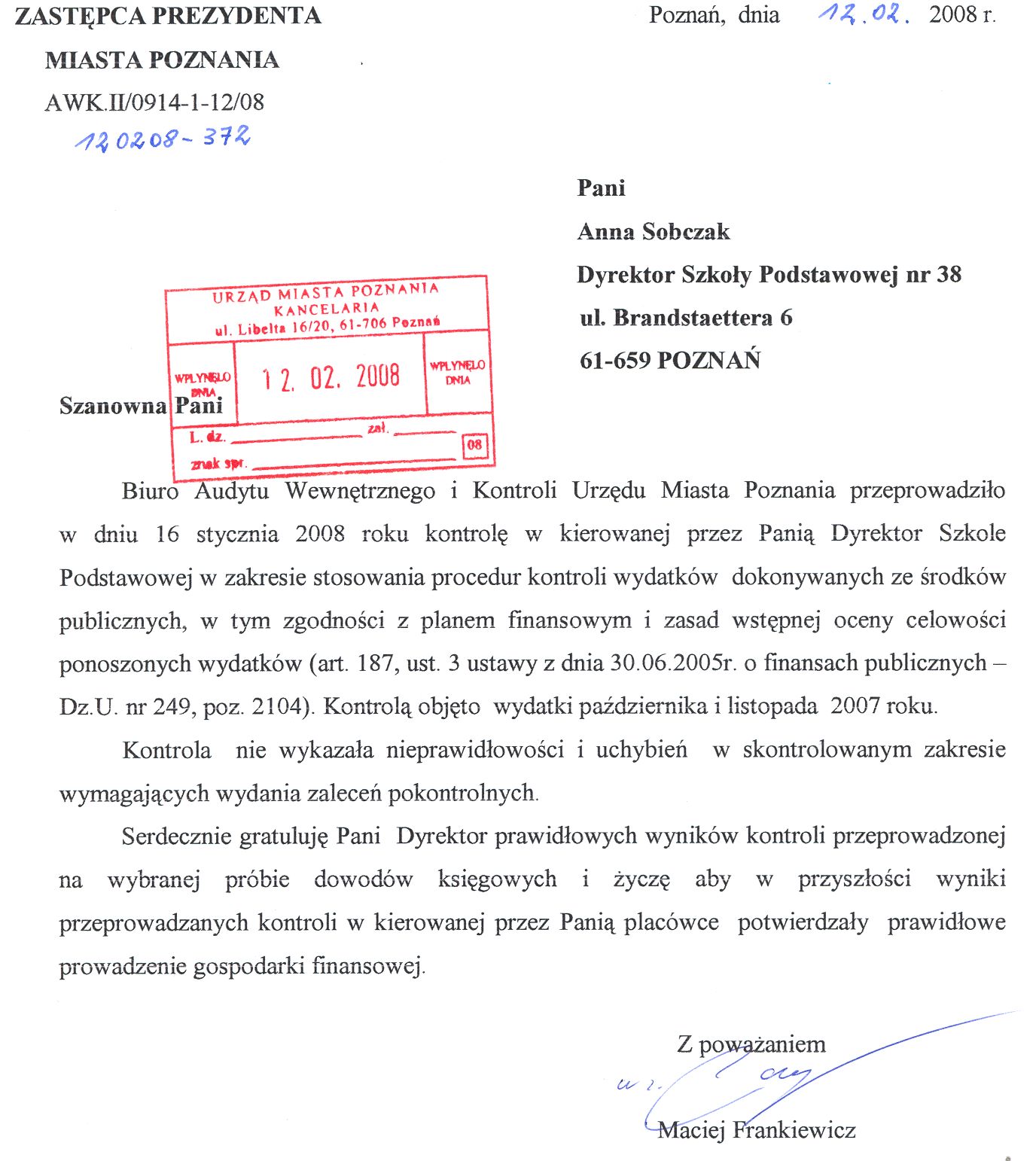 Kontrola: AWK.II/0914-1-12/08