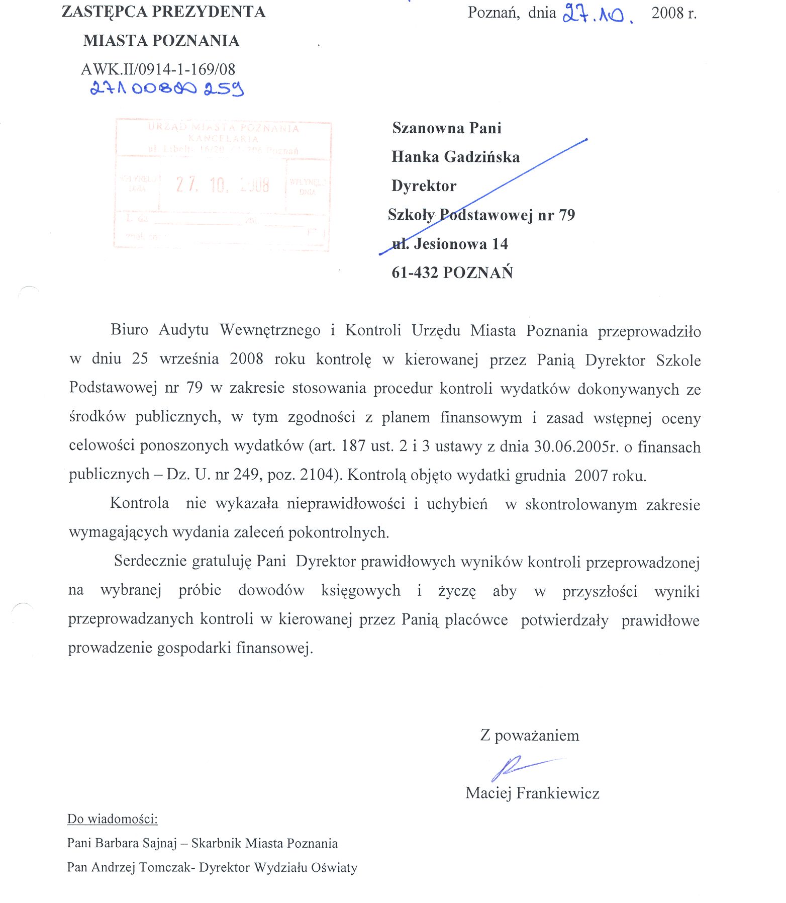 Kontrola: AWK.II/0914-1-169/08