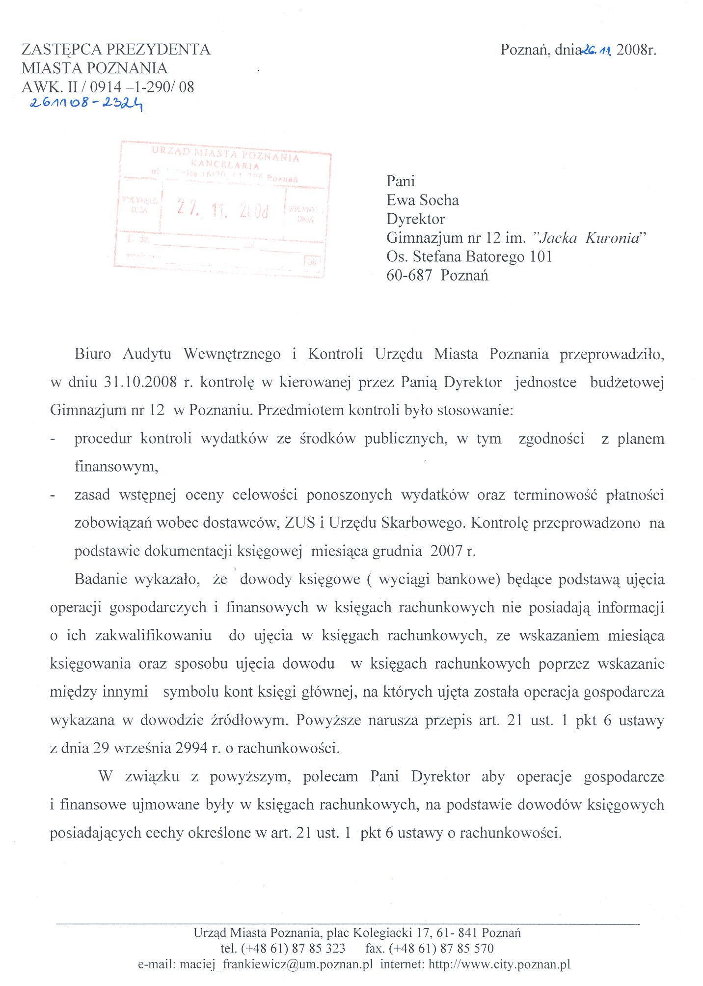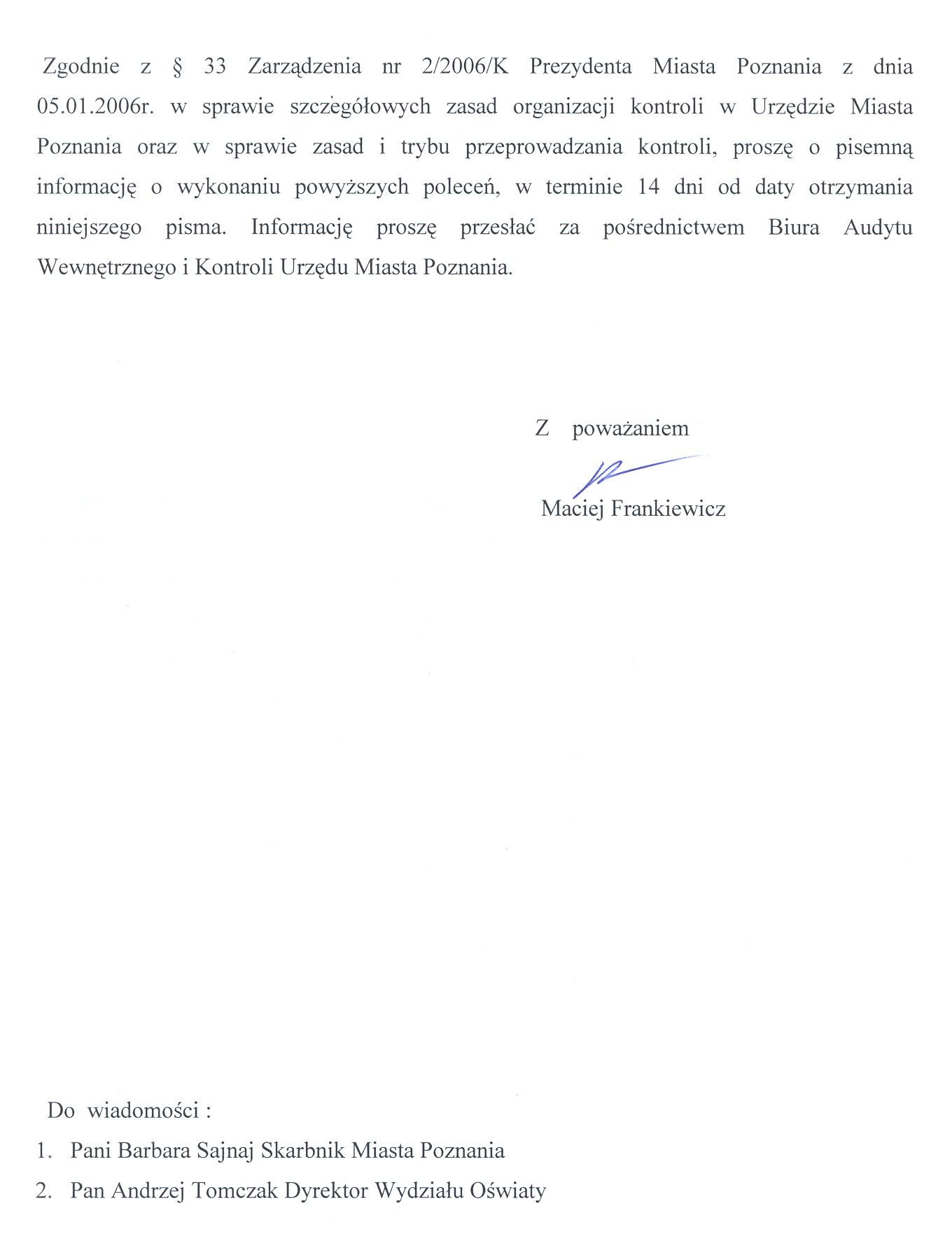 Informacja pobrana do BIP automatycznie z elektronicznego systemu zarządzania dokumentacją Urzędu Miasta Poznania.