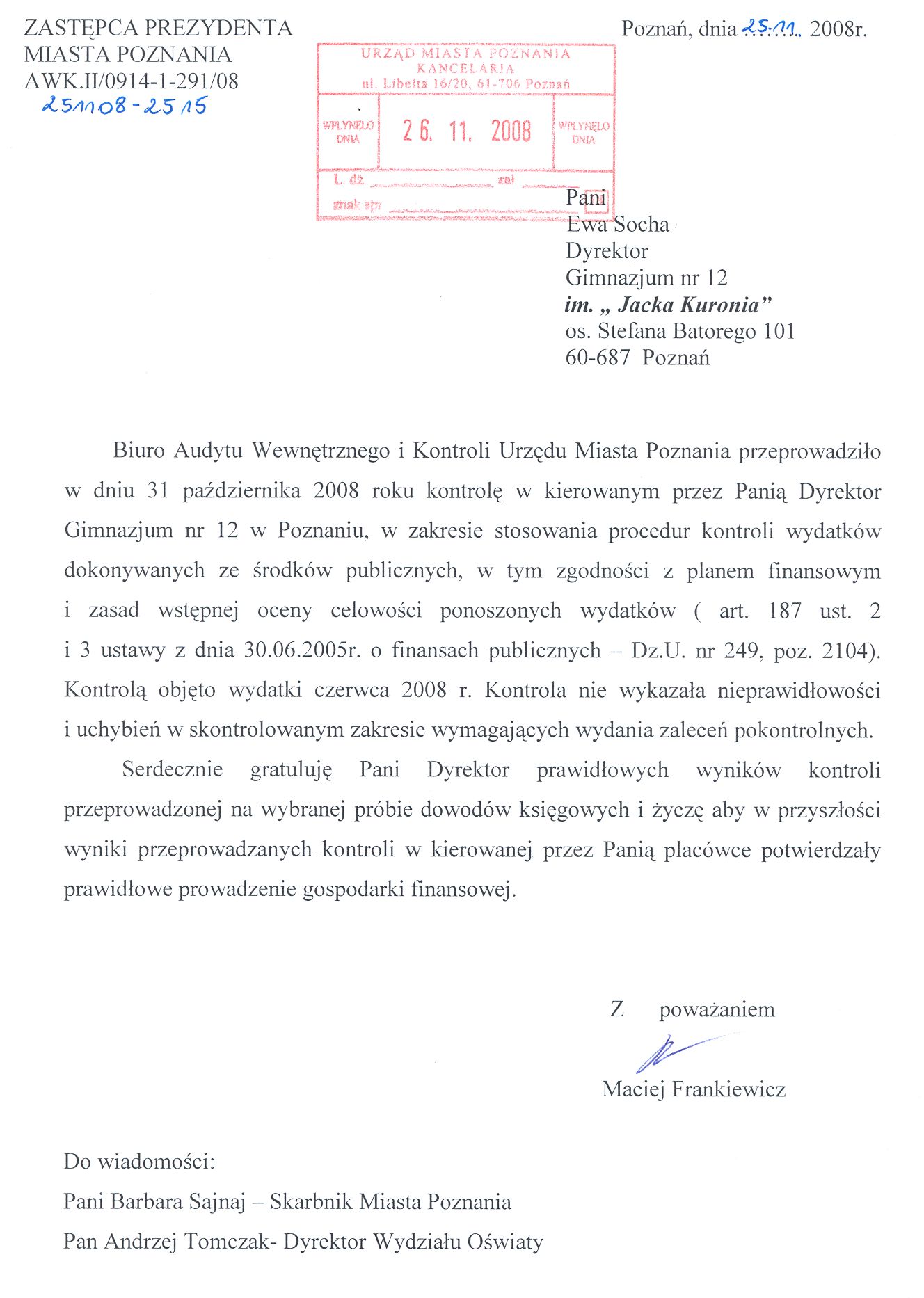 Informacja pobrana do BIP automatycznie z elektronicznego systemu zarządzania dokumentacją Urzędu Miasta Poznania.