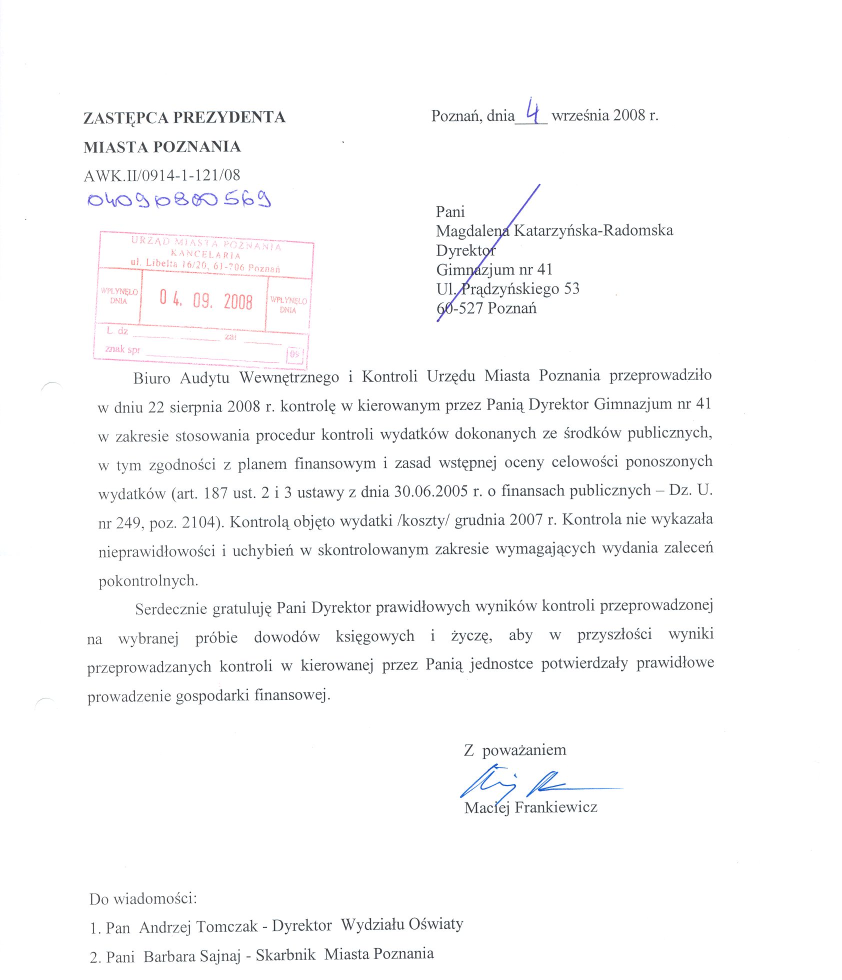 Kontrola: AWK.II/0914-1-121/08