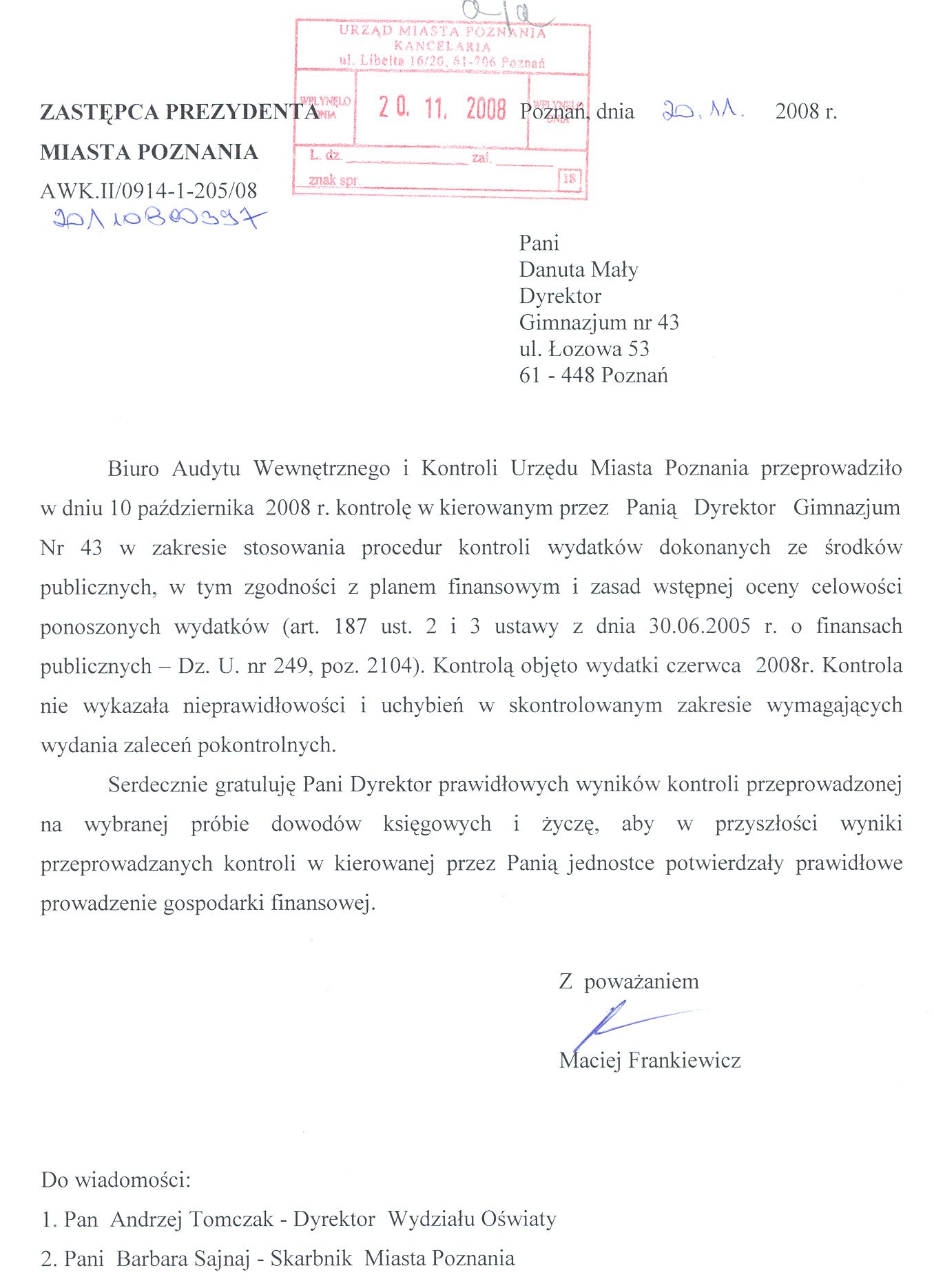 Informacja pobrana do BIP automatycznie z elektronicznego systemu zarządzania dokumentacją Urzędu Miasta Poznania.