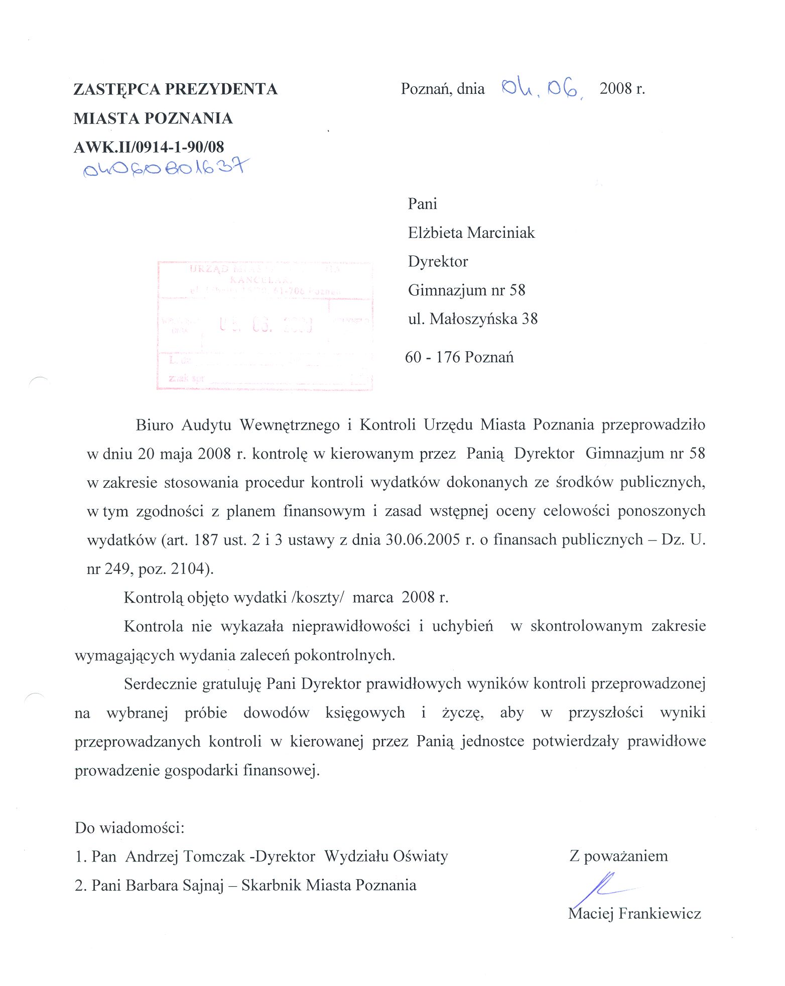 Informacja pobrana do BIP automatycznie z elektronicznego systemu zarządzania dokumentacją Urzędu Miasta Poznania.