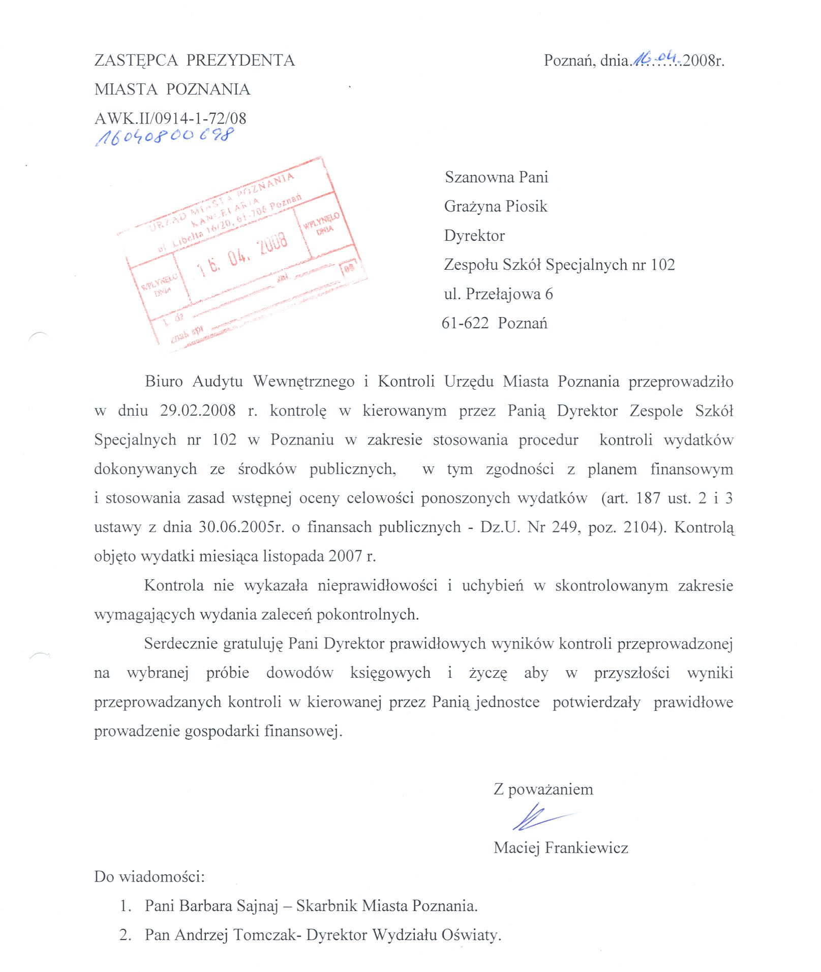 Kontrola: AWK.II/0914-1-72/08