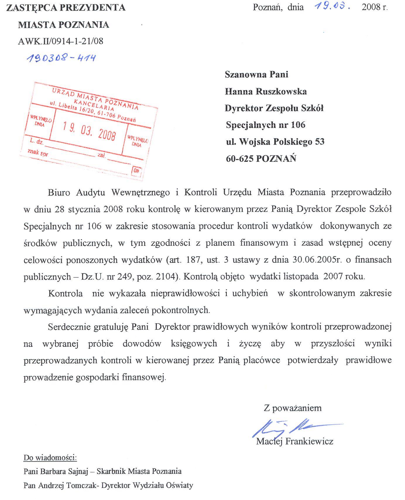 Informacja pobrana do BIP automatycznie z elektronicznego systemu zarządzania dokumentacją Urzędu Miasta Poznania.