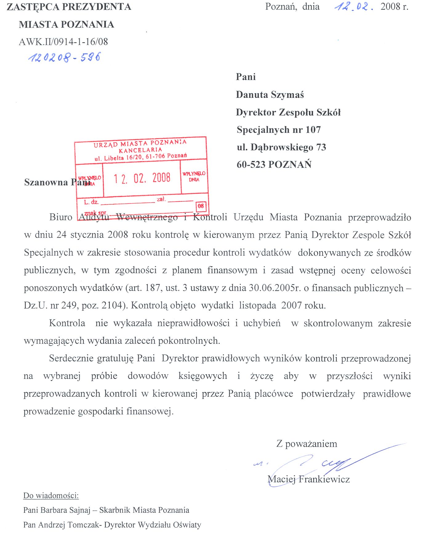 Informacja pobrana do BIP automatycznie z elektronicznego systemu zarządzania dokumentacją Urzędu Miasta Poznania.