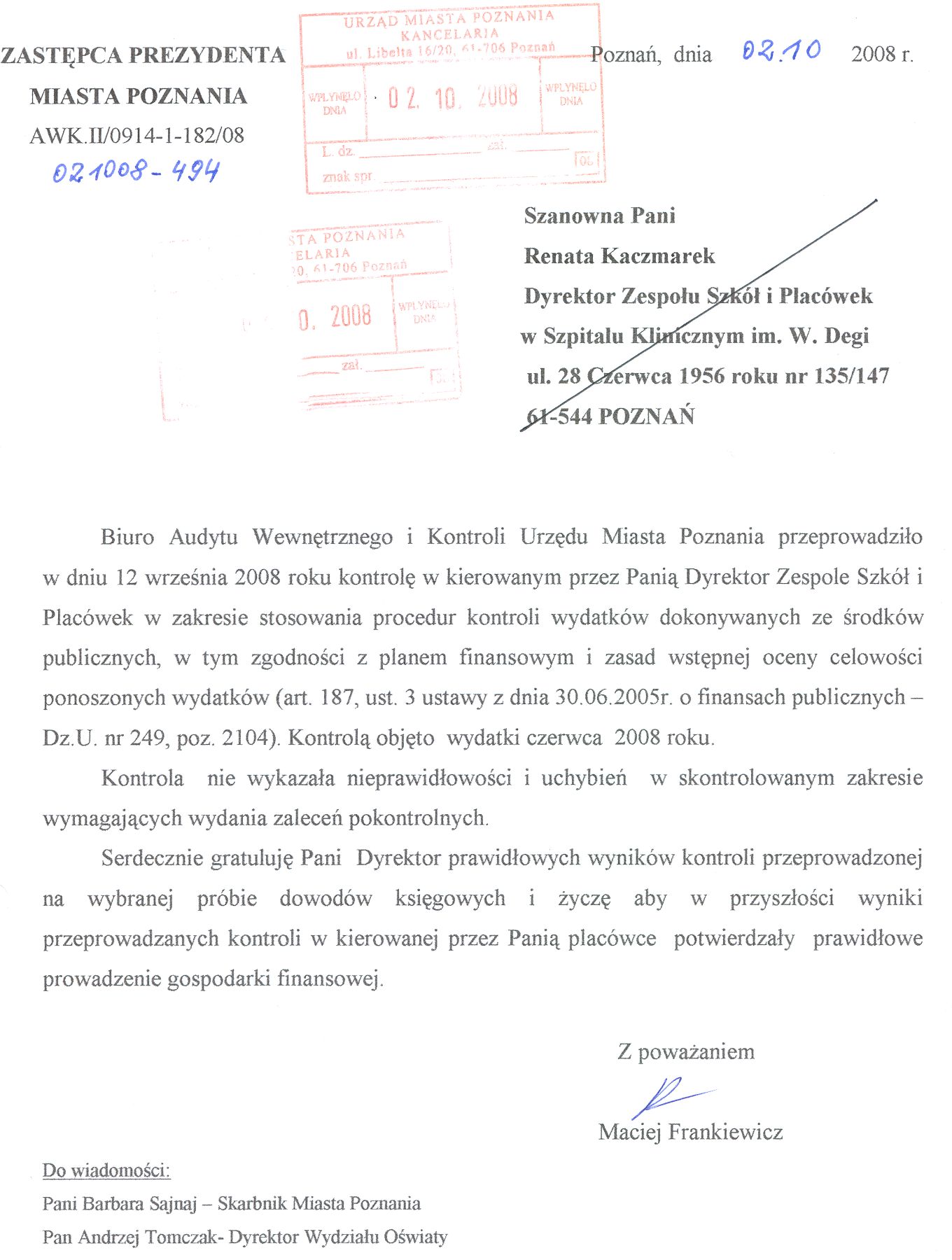 Informacja pobrana do BIP automatycznie z elektronicznego systemu zarządzania dokumentacją Urzędu Miasta Poznania.