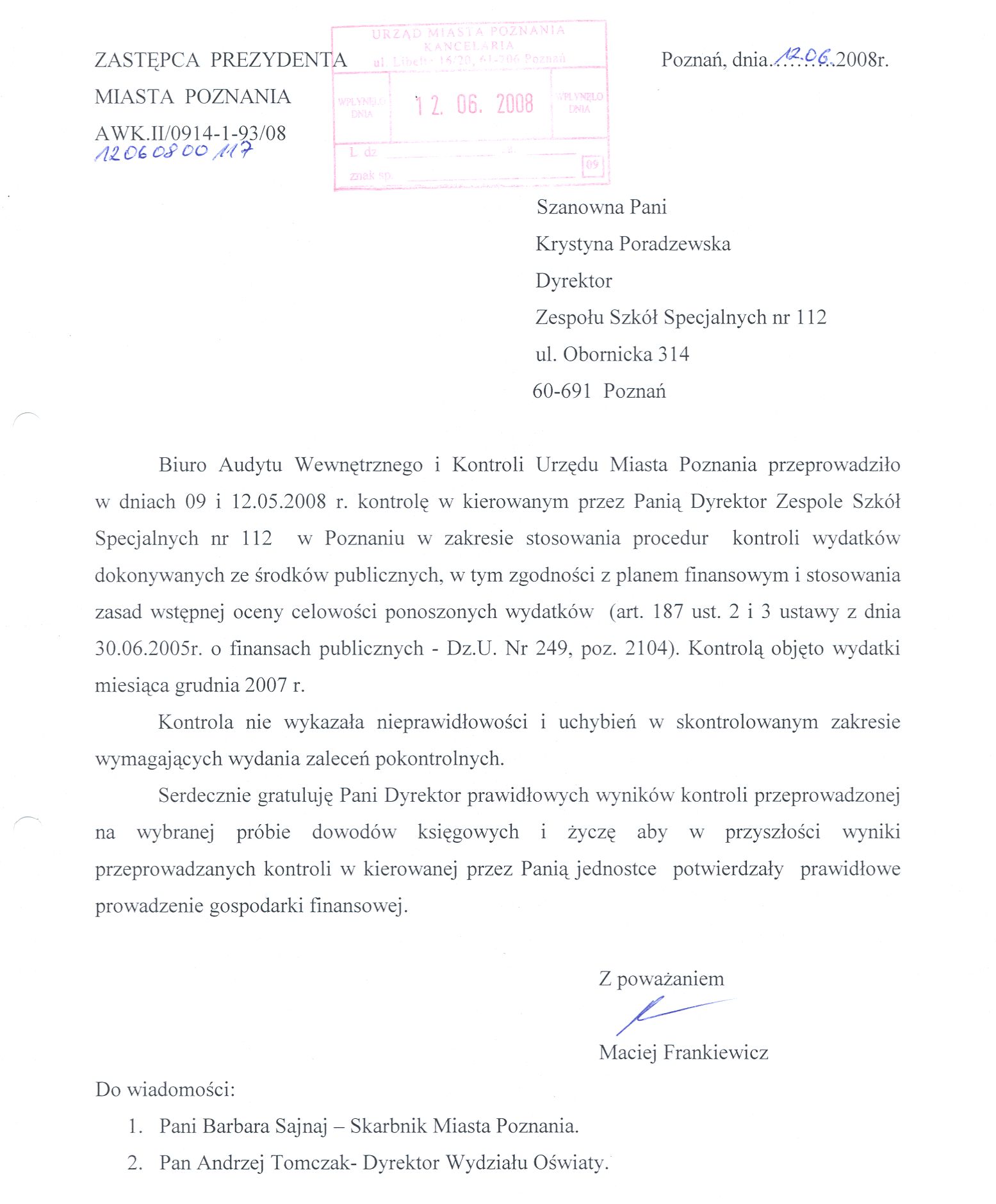 Informacja pobrana do BIP automatycznie z elektronicznego systemu zarządzania dokumentacją Urzędu Miasta Poznania.