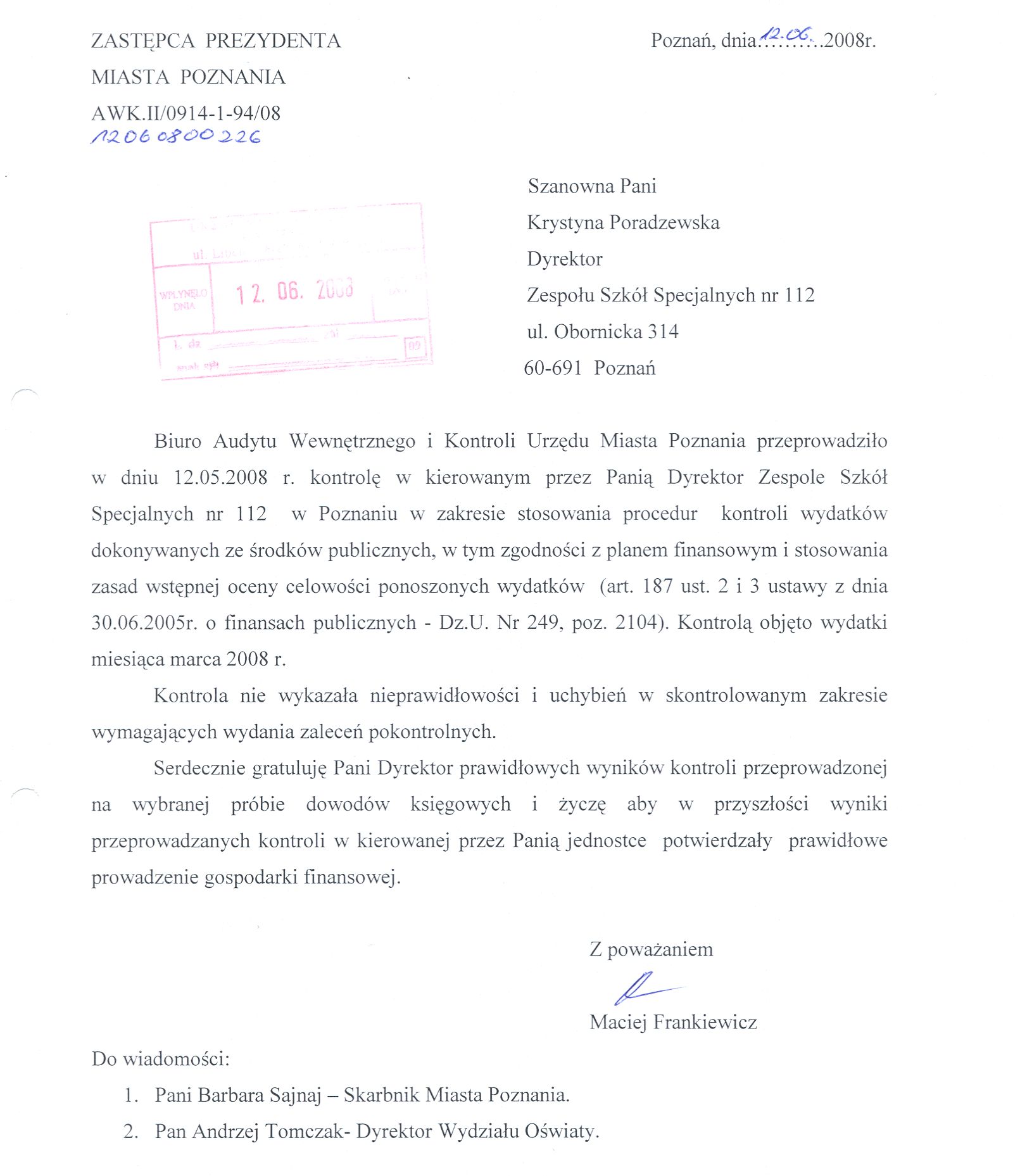Informacja pobrana do BIP automatycznie z elektronicznego systemu zarządzania dokumentacją Urzędu Miasta Poznania.