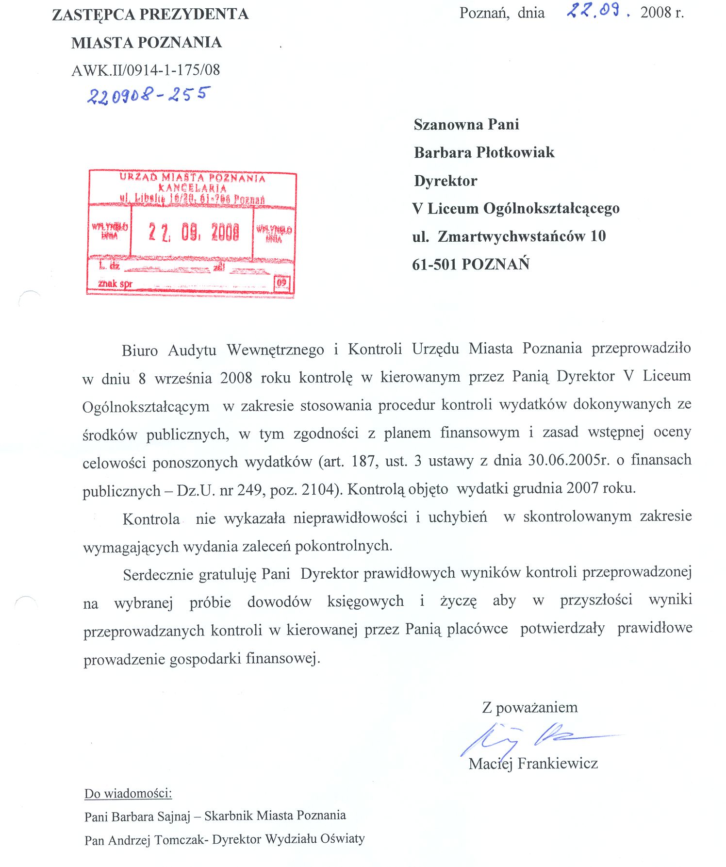 Informacja pobrana do BIP automatycznie z elektronicznego systemu zarządzania dokumentacją Urzędu Miasta Poznania.