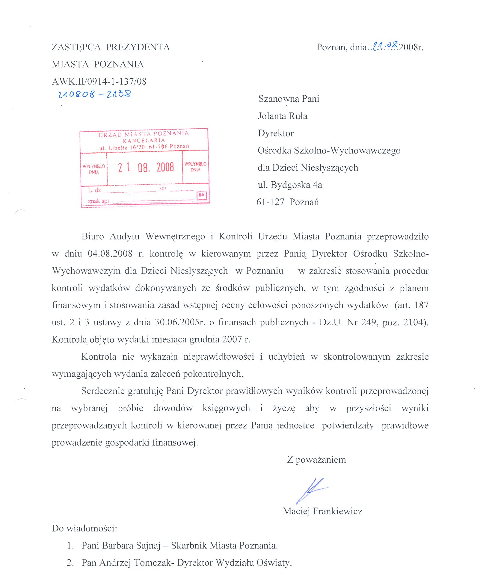 Kontrola: AWK.II/0914-1-137/08