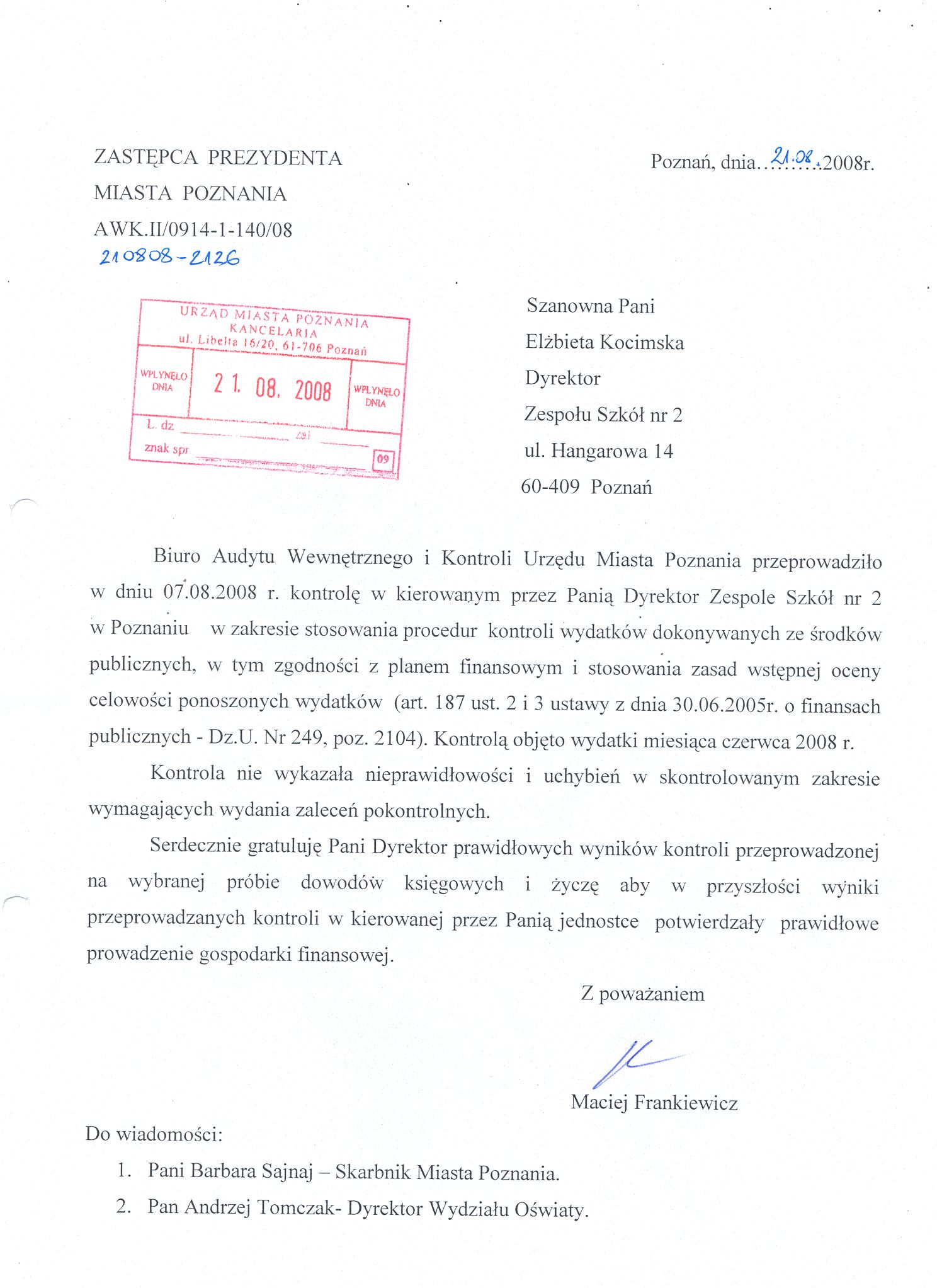 Informacja pobrana do BIP automatycznie z elektronicznego systemu zarządzania dokumentacją Urzędu Miasta Poznania.