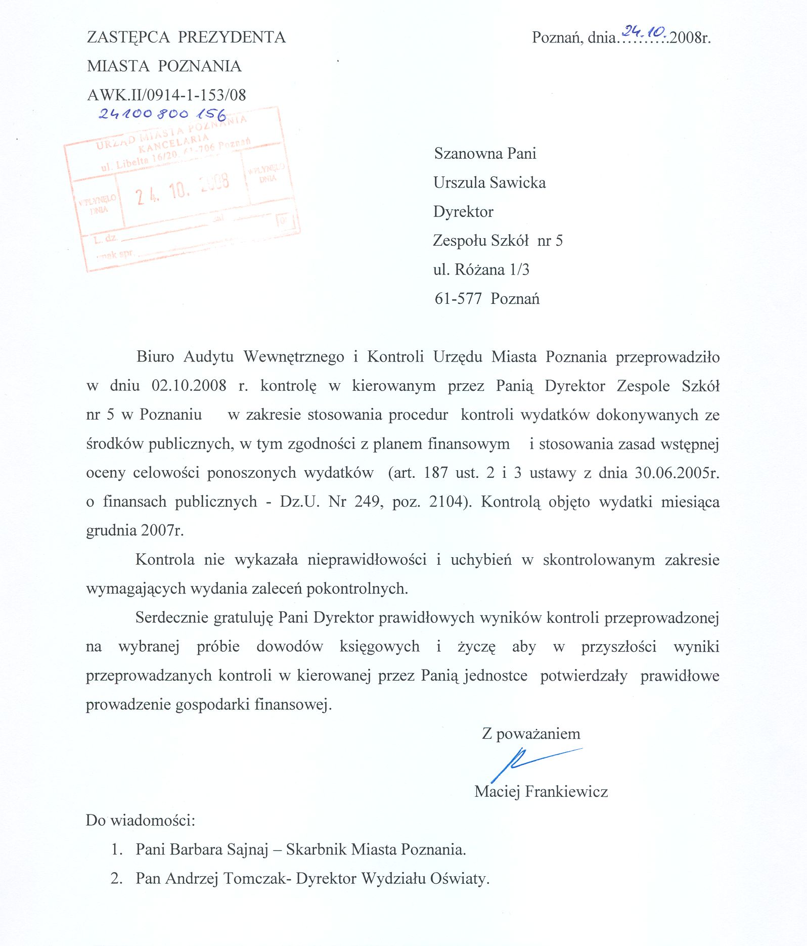 Informacja pobrana do BIP automatycznie z elektronicznego systemu zarządzania dokumentacją Urzędu Miasta Poznania.
