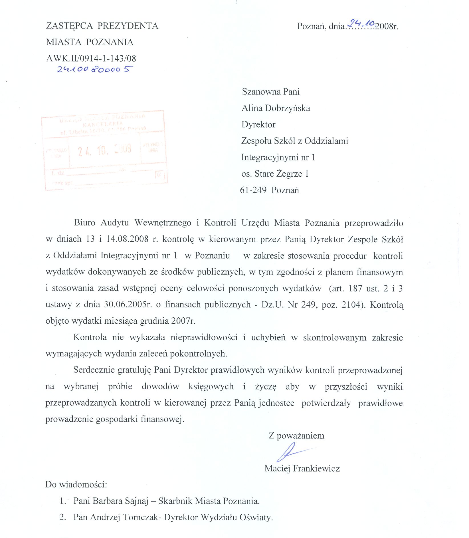 Kontrola: AWK.II/0914-1-143/08