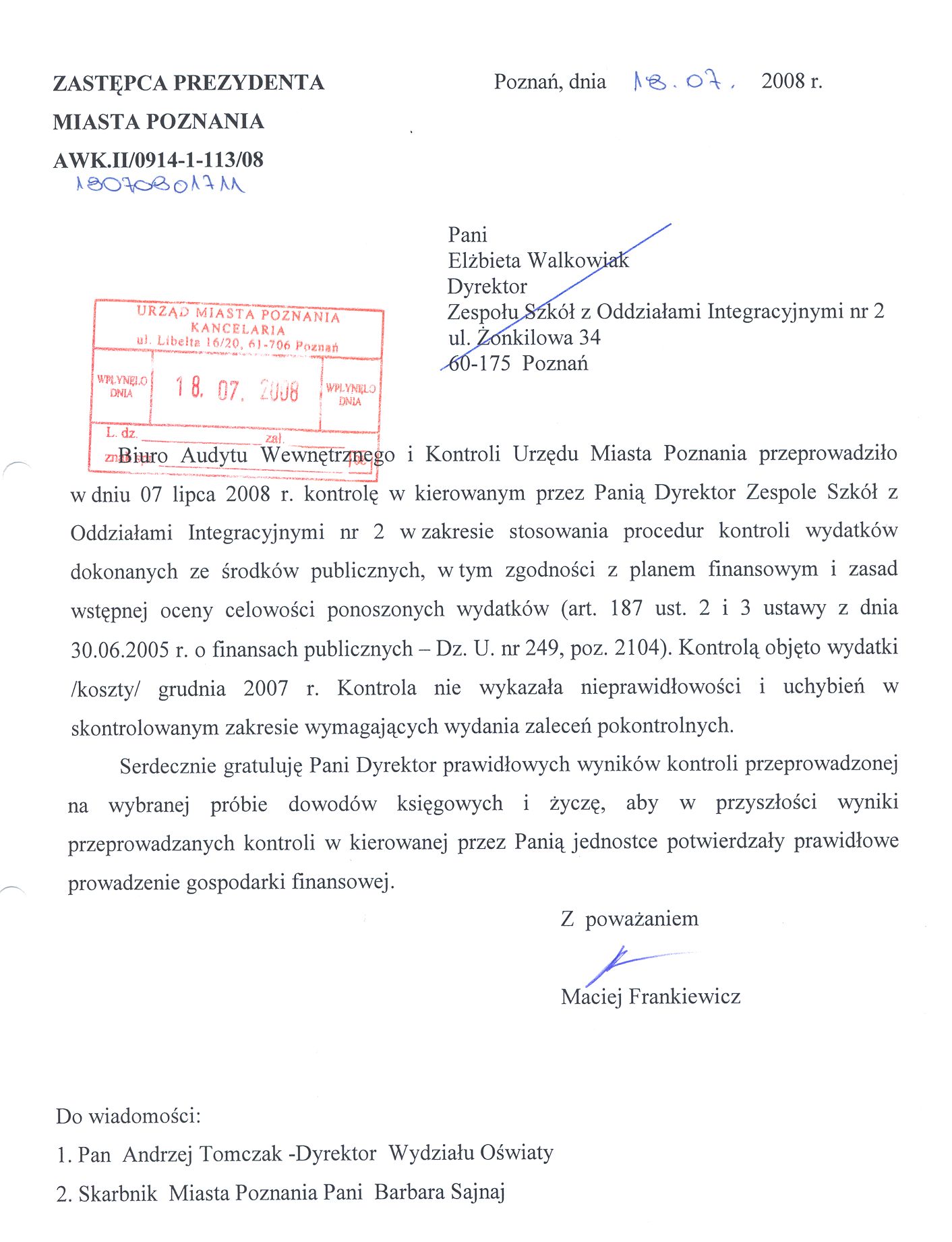 Kontrola: AWK.II/0914-1-113/08