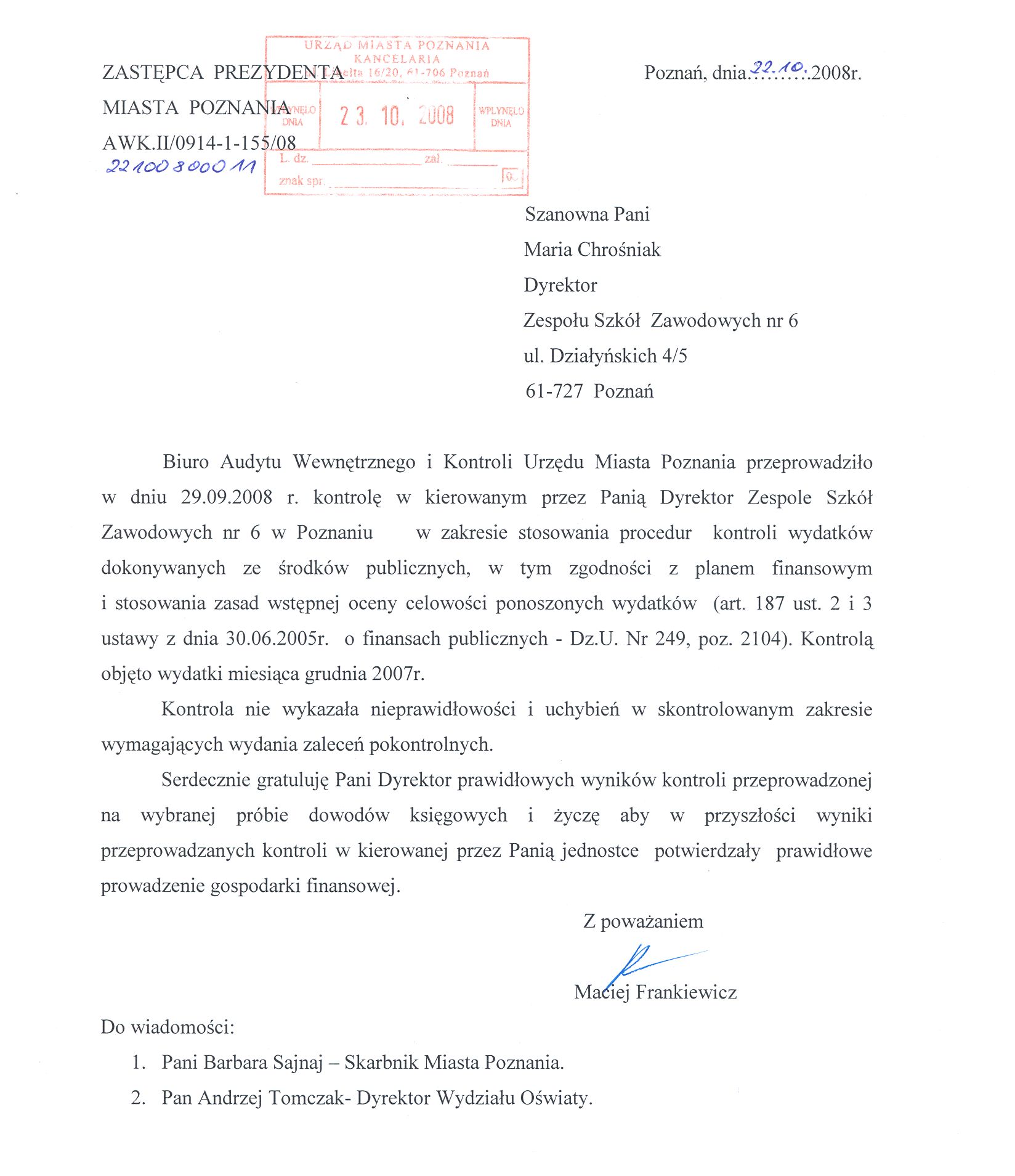 Kontrola: AWK.II/0914-1-155/08