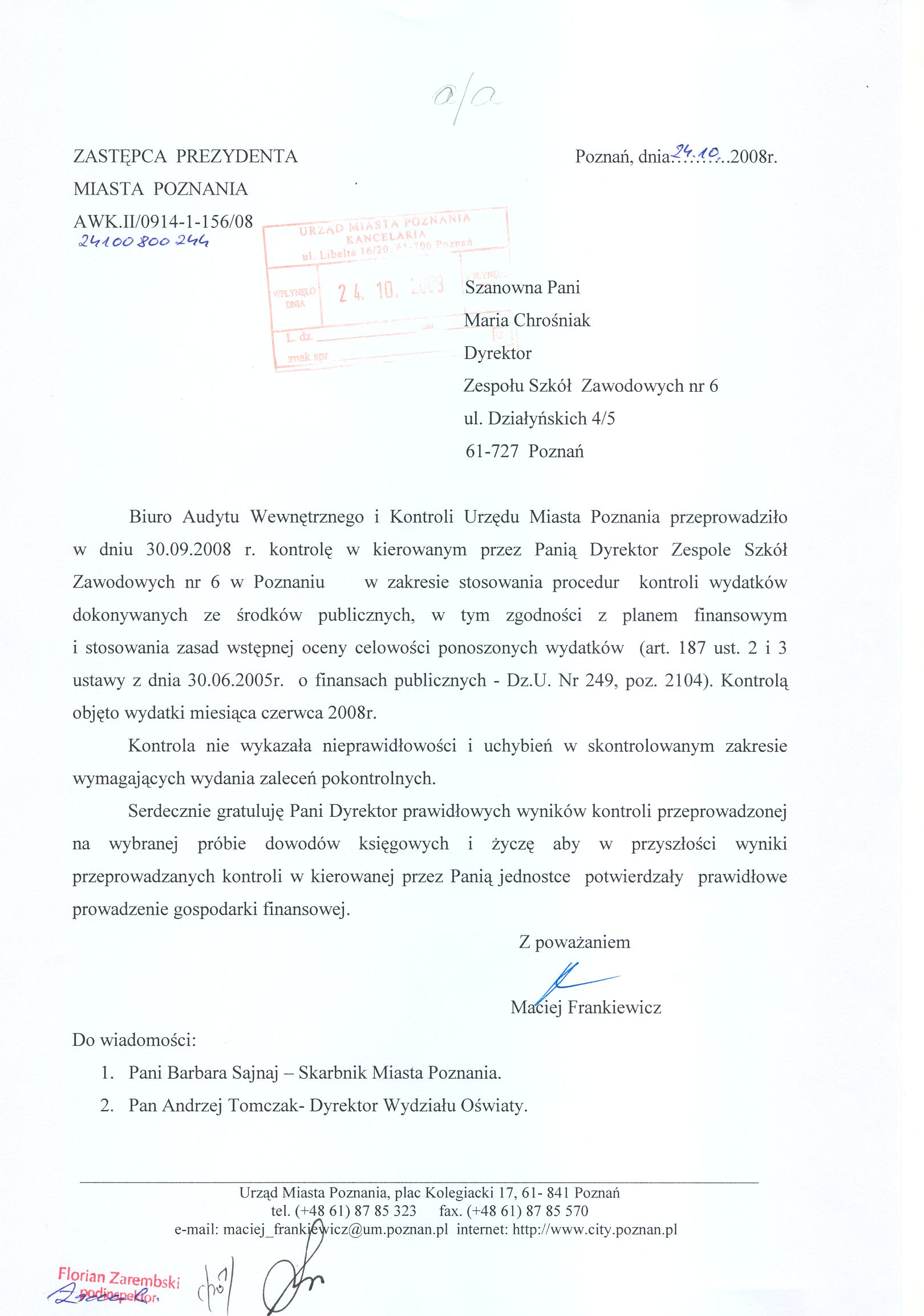 Informacja pobrana do BIP automatycznie z elektronicznego systemu zarządzania dokumentacją Urzędu Miasta Poznania.