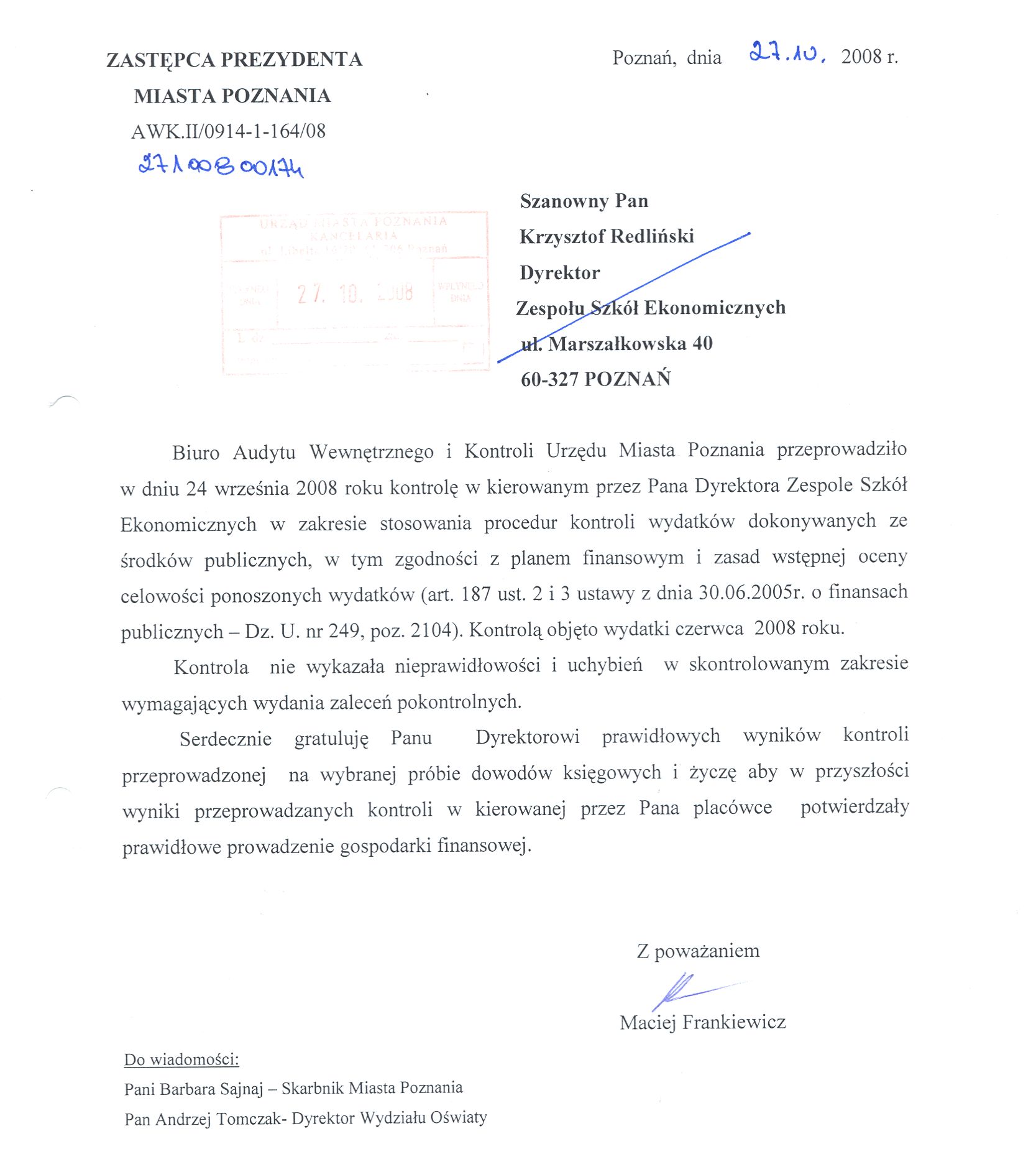 Kontrola: AWK.II/0914-1-164/08